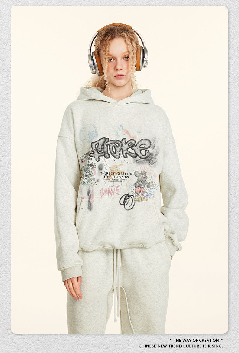 ♛𝔽𝕦𝕤𝕚𝕠𝕟 𝔽𝕠𝕔𝕦𝕤 ♛2025秋冬高磅水洗印花寬鬆落肩帽T 506