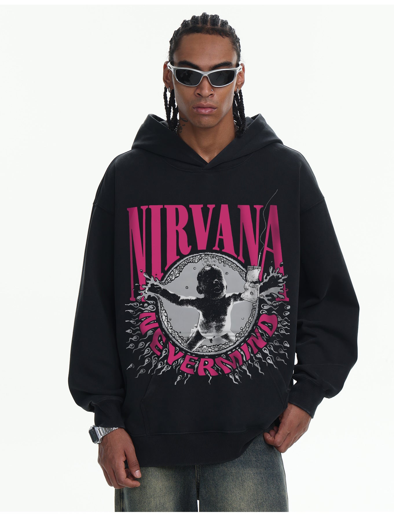 ♛𝔽𝕦𝕤𝕚𝕠𝕟 𝔽𝕠𝕔𝕦𝕤 ♛410G重磅水洗美式復古NIRVANA連帽大學T FZ-16