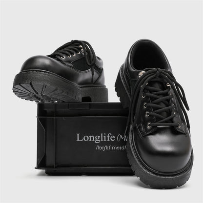 ♛𝔽𝕦𝕤𝕚𝕠𝕟 𝔽𝕠𝕔𝕦𝕤☢︎ᴄᴀꜱᴜᴀʟ ᴅʀᴇꜱꜱ ♜✽2025✽復古圓頭增高厚底皮鞋 中性男女款 ʏᴢ𝟧𝟧