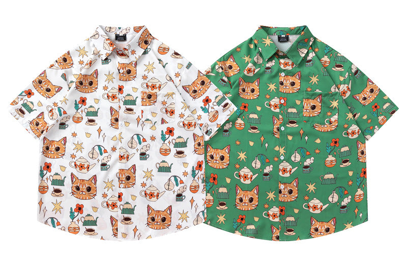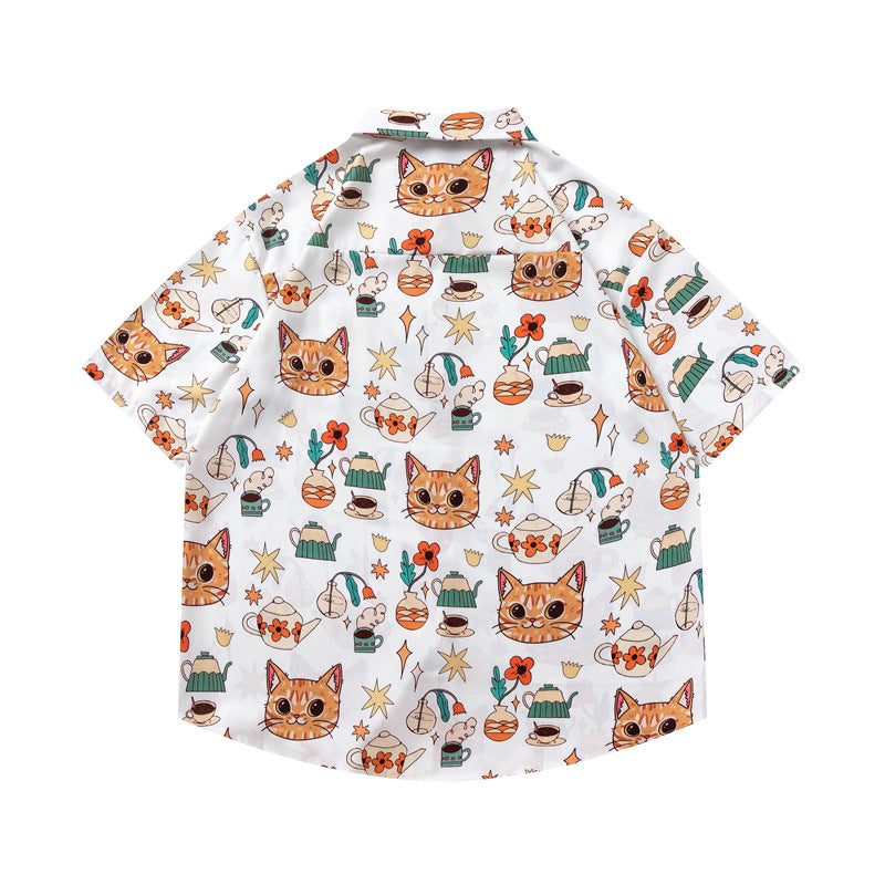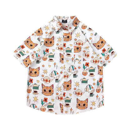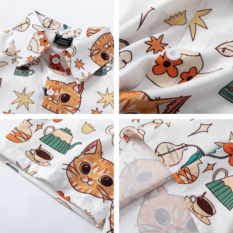 𝕃oose 𝔽it ☞𝟤𝟢𝟤𝟧 ☜日式復古趣味貓咪滿印百搭休閒寬鬆襯衫 RF-147