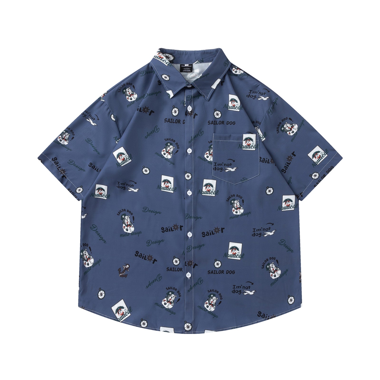 𝕃oose 𝔽it ☞𝟤𝟢𝟤𝟧 ☜日式復古可愛小狗滿版印花百搭休閒寬鬆襯衫 RF180