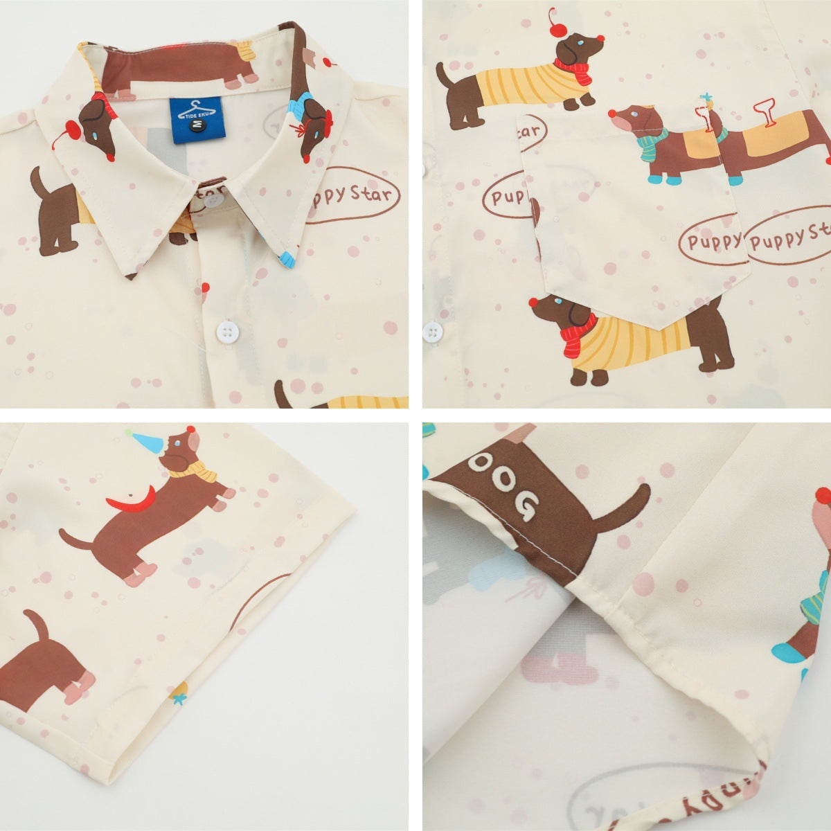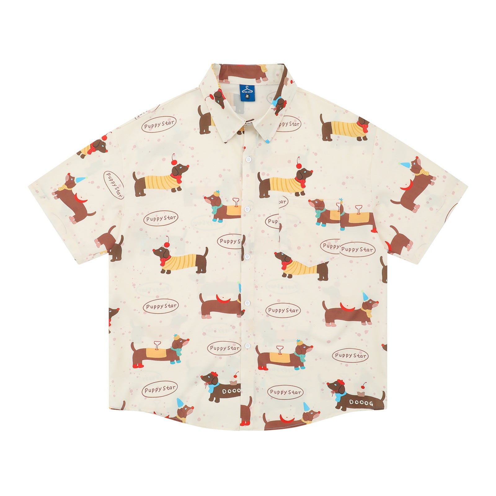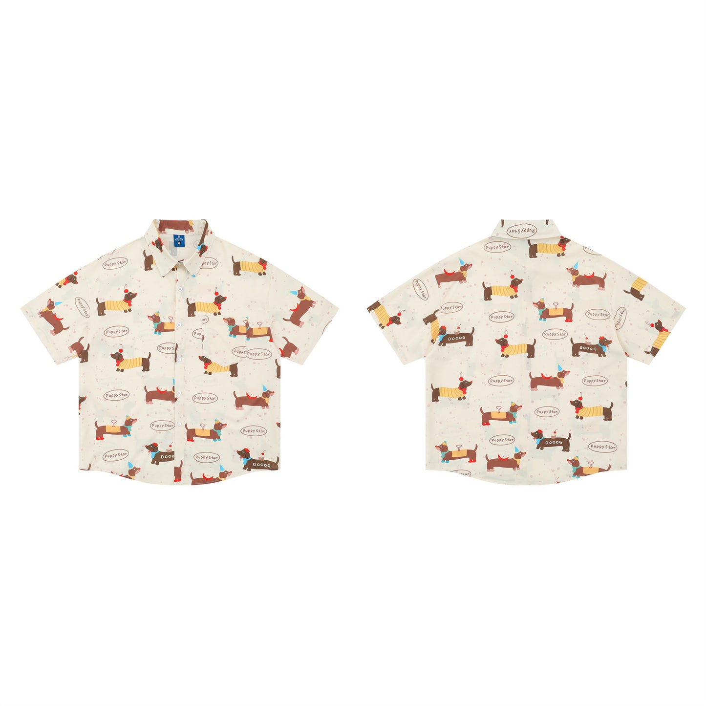 𝕃oose 𝔽it ☞𝟤𝟢𝟤𝟧 ☜日式復古趣味小狗滿版印花百搭休閒寬鬆襯衫 ᴠᴊ𝟣𝟥