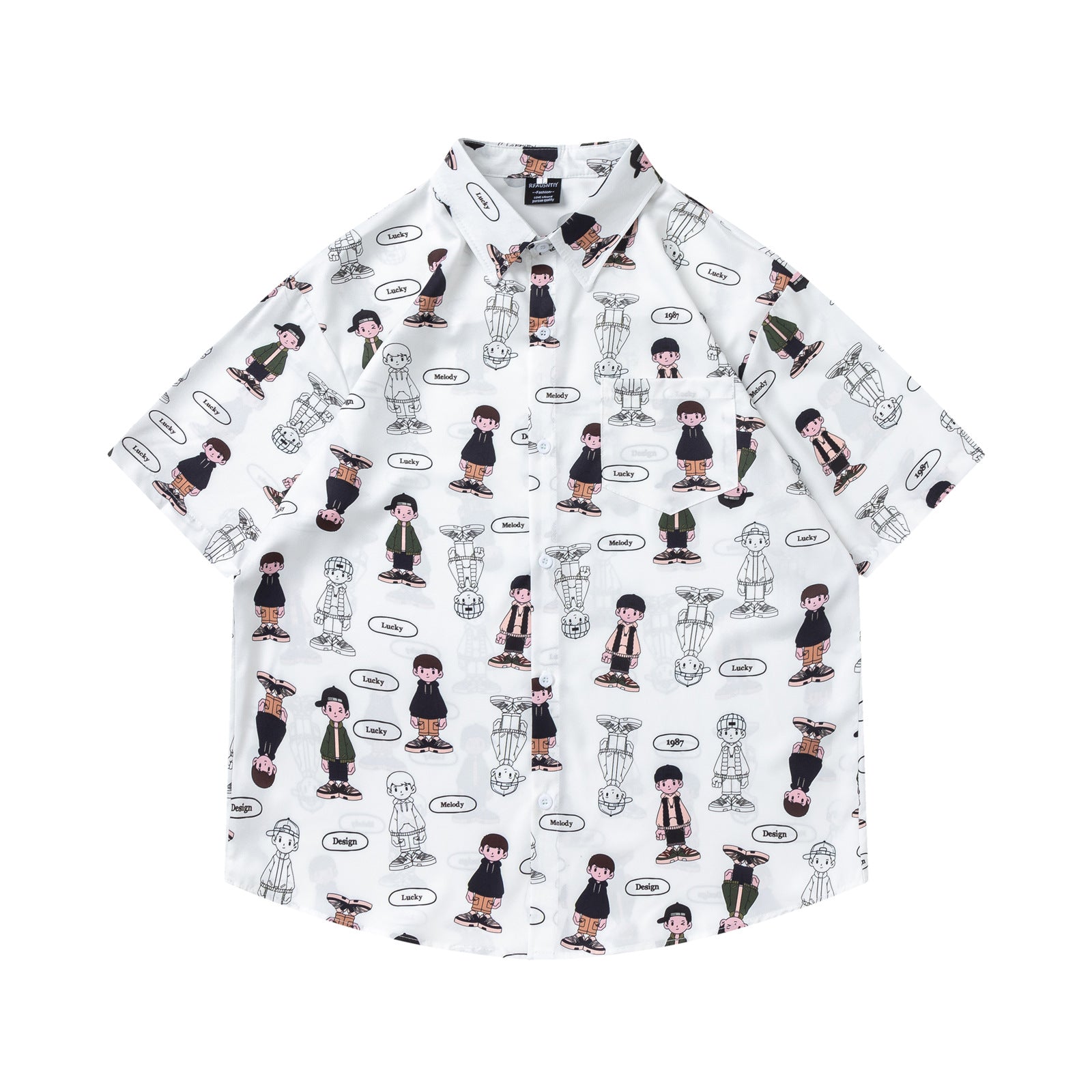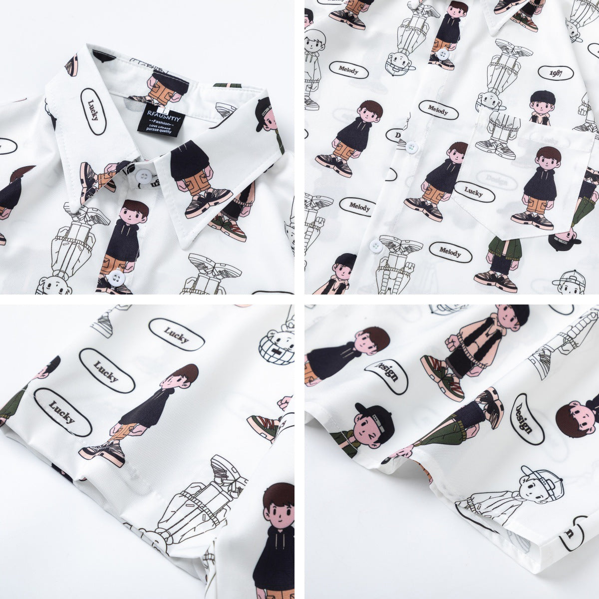 𝕃oose 𝔽it ☞𝟤𝟢𝟤𝟧 ☜日式復古卡通男孩滿印百搭休閒寬鬆襯衫 RF-185