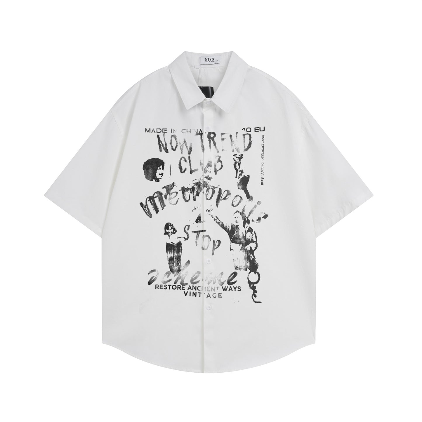 𝕃oose 𝔽it ☞𝟤𝟢𝟤𝟧 ☜美式復古圖案印花百搭休閒寬鬆襯衫 (白色)