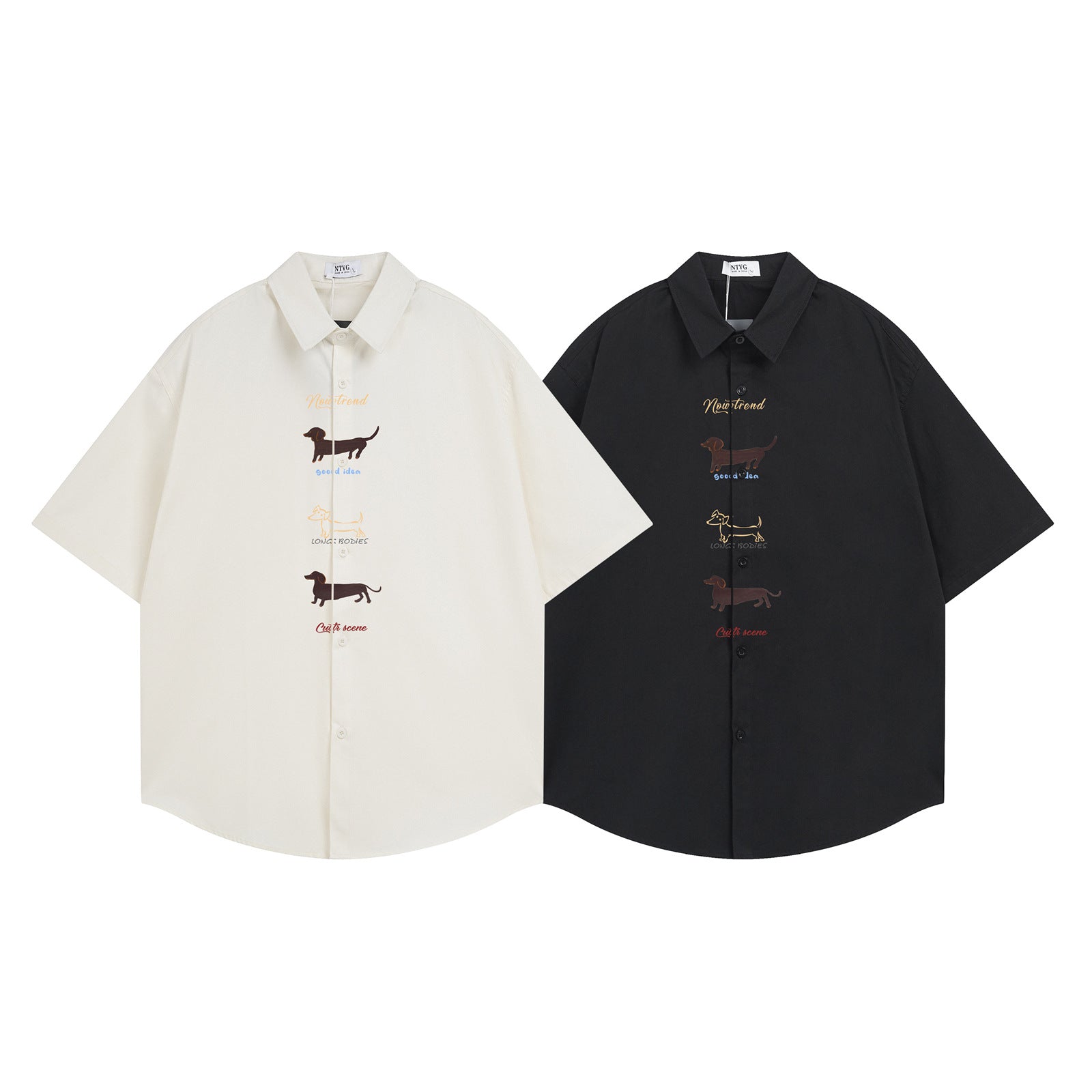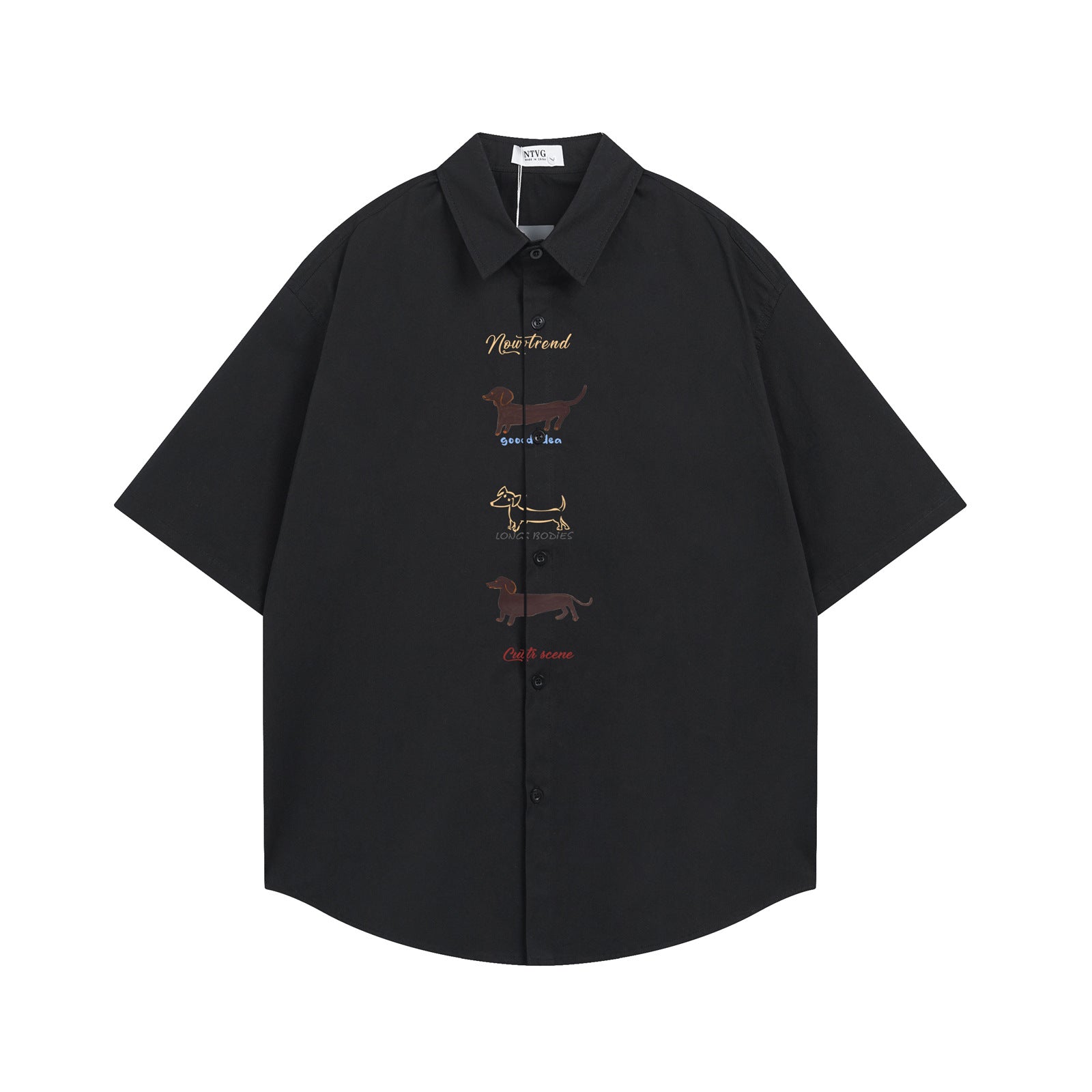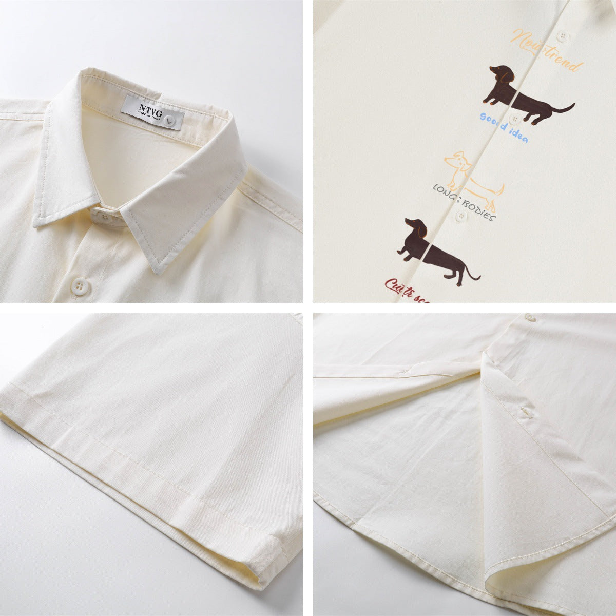 𝕃oose 𝔽it ☞𝟤𝟢𝟤𝟧 ☜日式復古萌狗圖案印花百搭休閒寬鬆襯衫 N110
