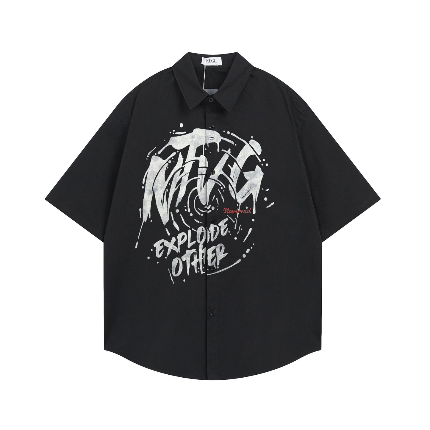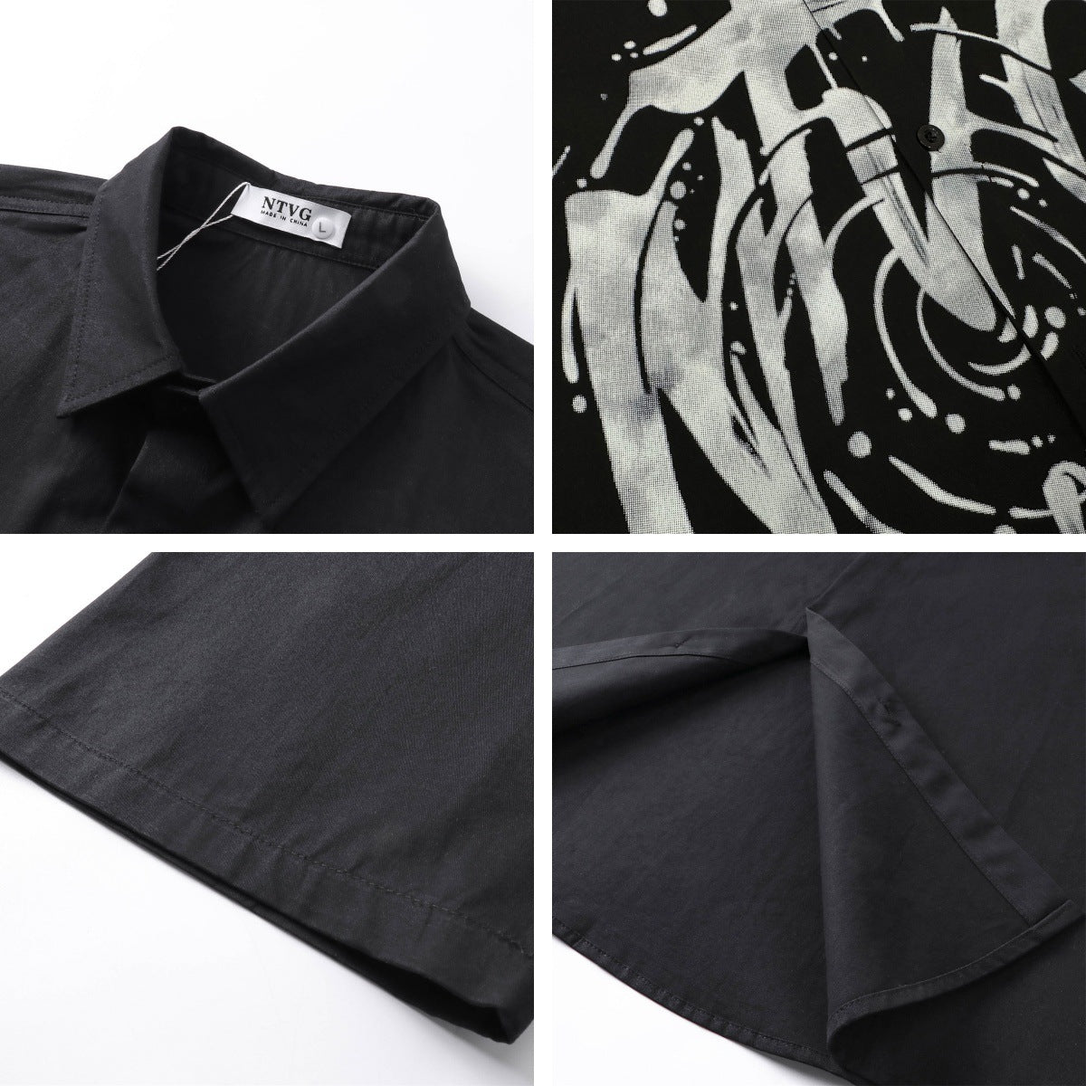 𝕃oose 𝔽it ☞𝟤𝟢𝟤𝟧 ☜春夏新款美式復古字母印花百搭寬鬆休閒襯衫 ɴᴛ𝟥𝟤 (黑色)