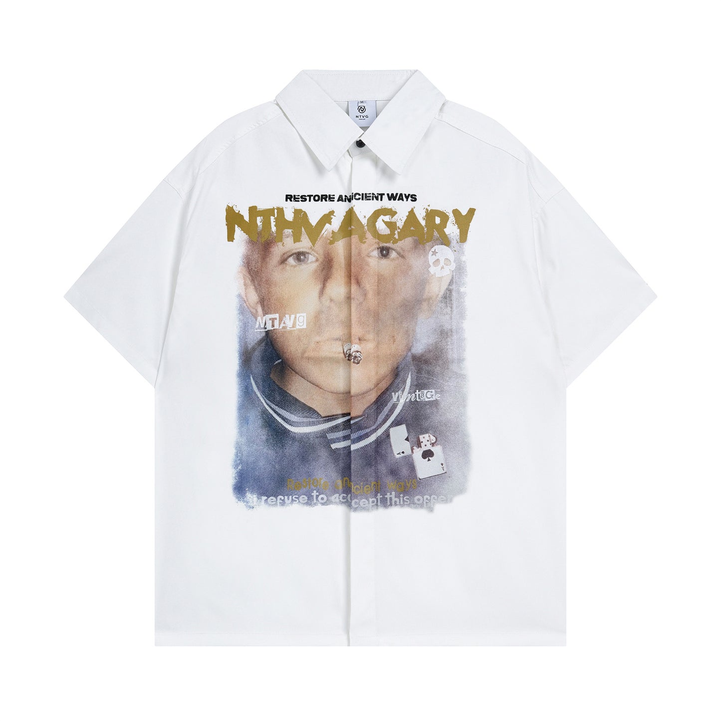 𝕃oose 𝔽it ☞𝟤𝟢𝟤𝟧 ☜美式復古人像圖案印花百搭休閒寬鬆襯衫 ɴᴛ𝟣-𝟥 (白色)
