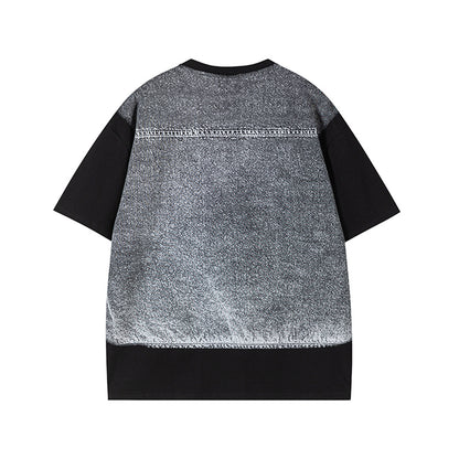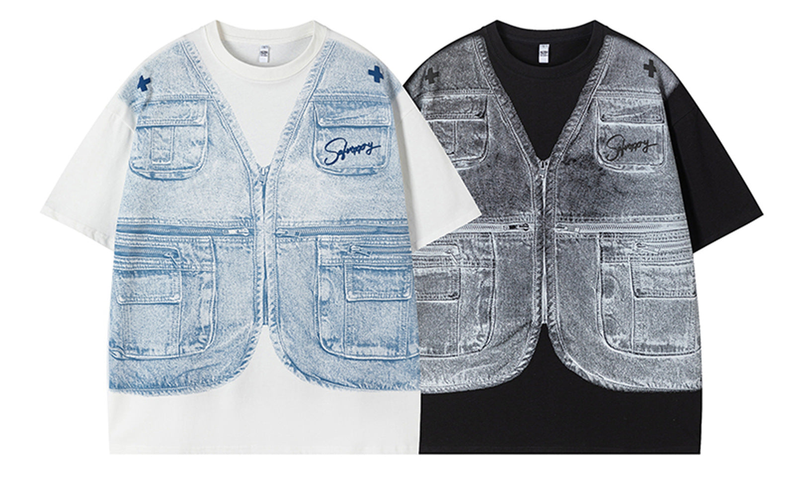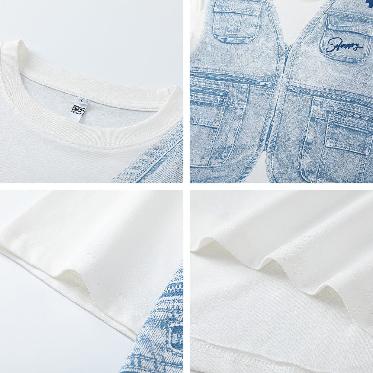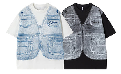 𝕃oose 𝔽it ☞𝟤𝟢𝟤𝟧 ☜美式復古假兩件馬甲印花設計感風格男女中性 T-Shirt寬版上衣 SA-4