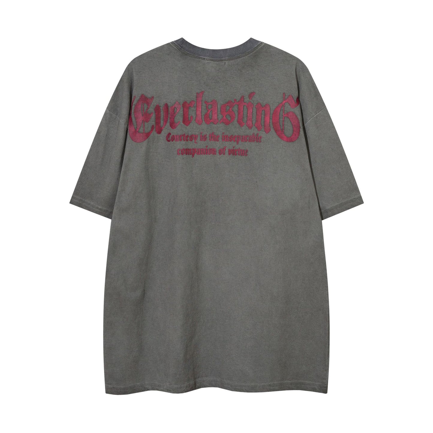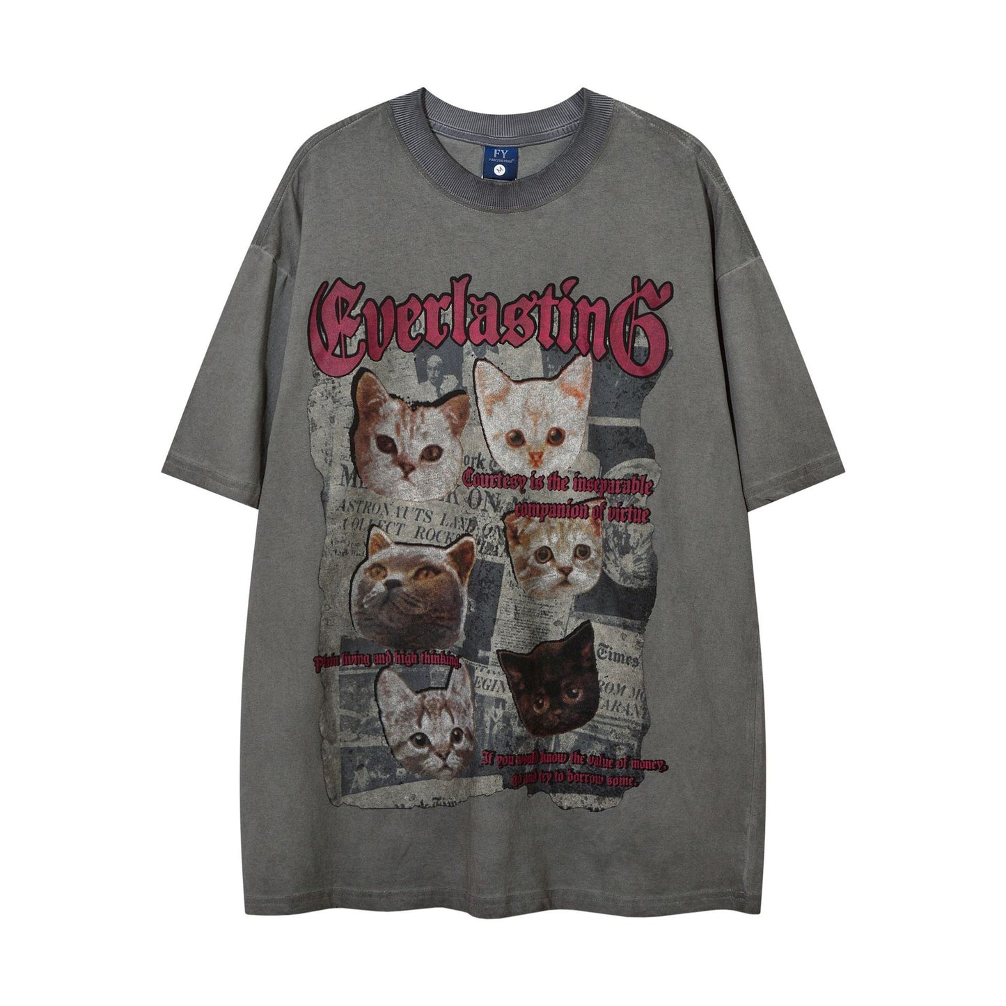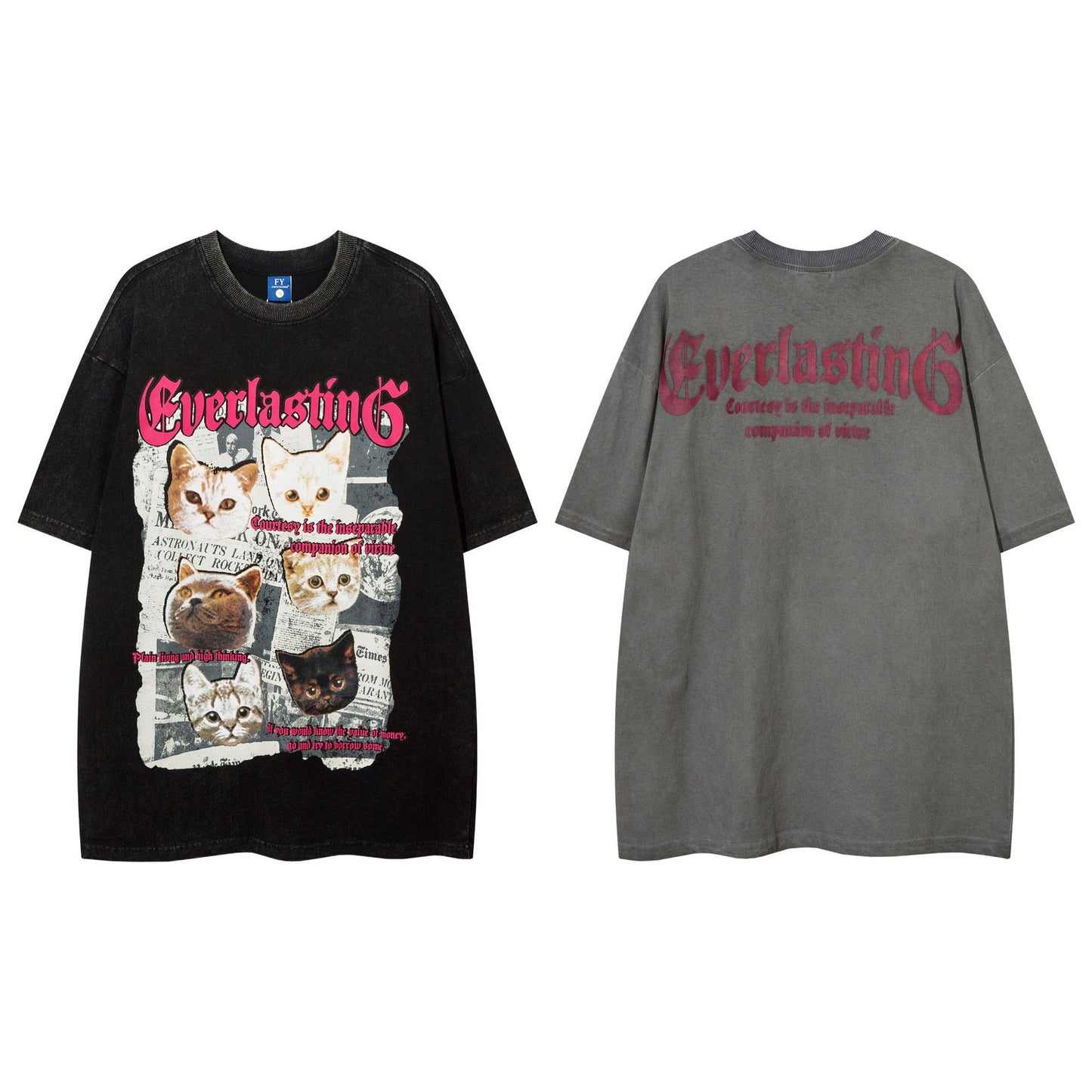 𝕃oose 𝔽it ☞𝟤𝟢𝟤𝟧 ☜美式復古做舊貓咪印花男女中性 T-Shirt寬版上衣FY-6#