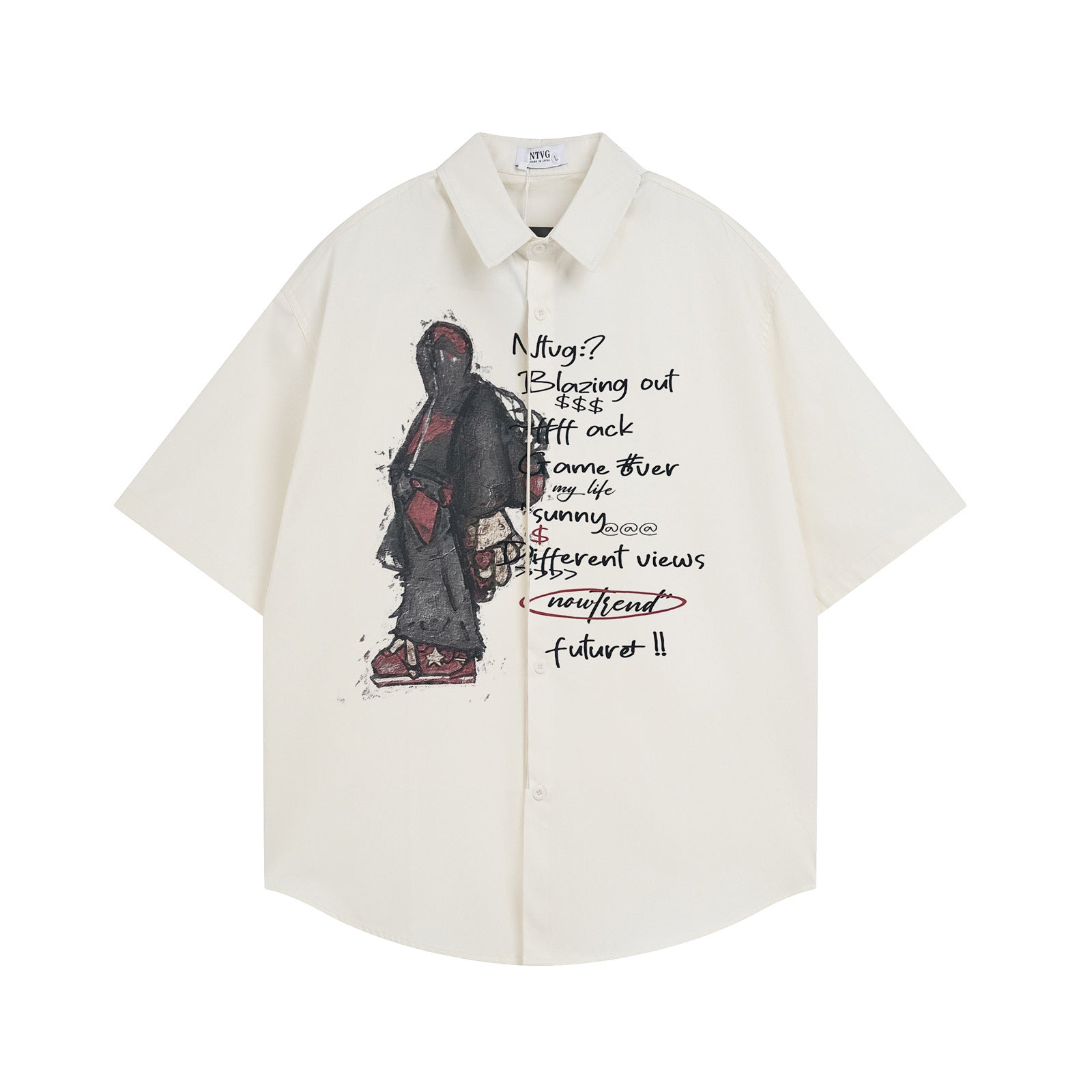 𝕃oose 𝔽it ☞𝟤𝟢𝟤𝟧 ☜美式復古卡通圖案印花百搭休閒寬鬆襯衫 ɴᴛ𝟦𝟨 (杏色)