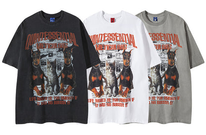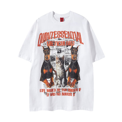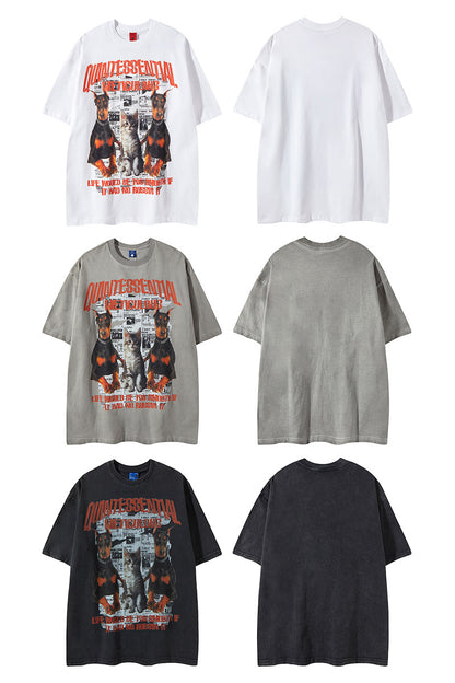 𝕃oose 𝔽it ☞𝟤𝟢𝟤𝟧 ☜美式復古貓狗印花風格男女中性 T-Shirt寬版上衣 FY58