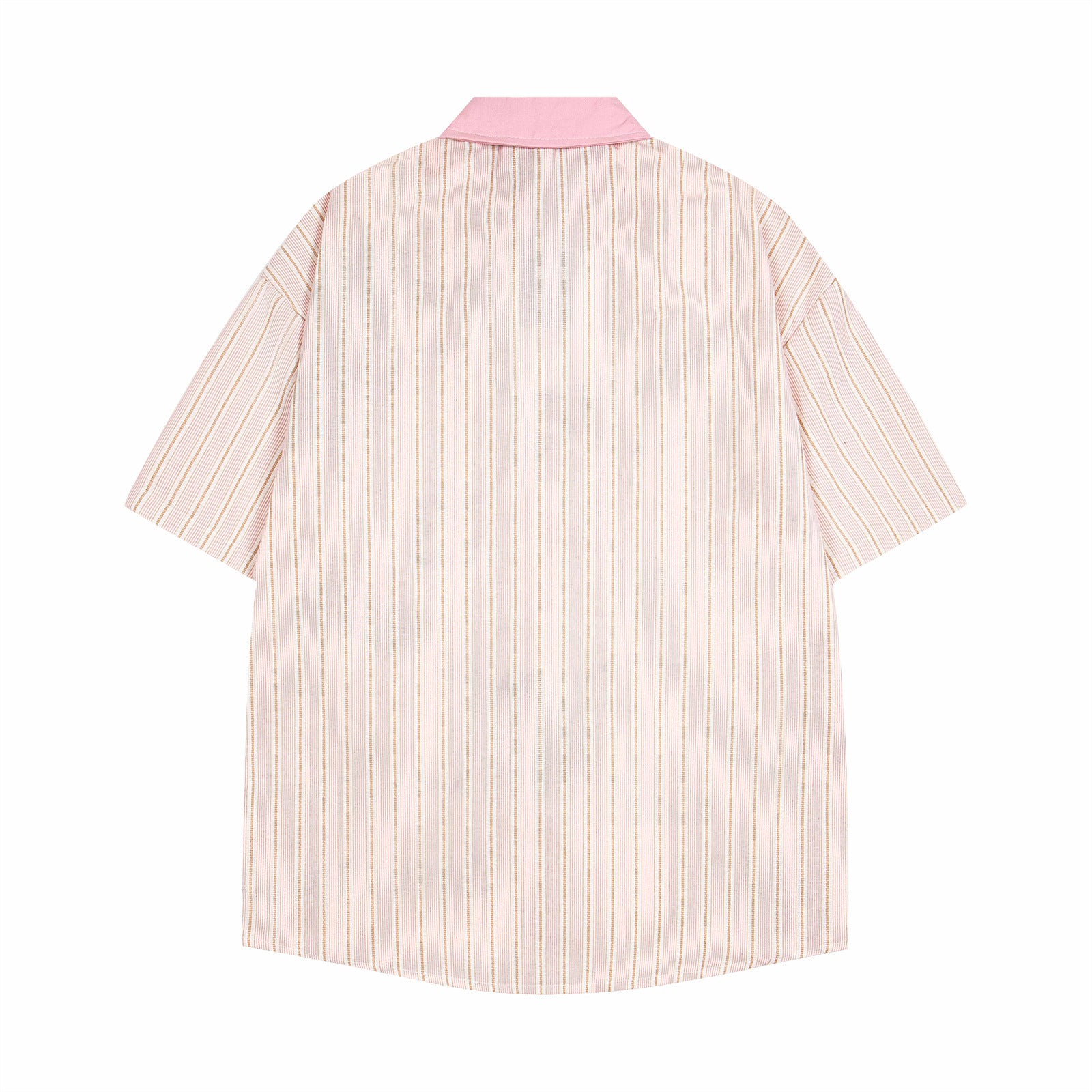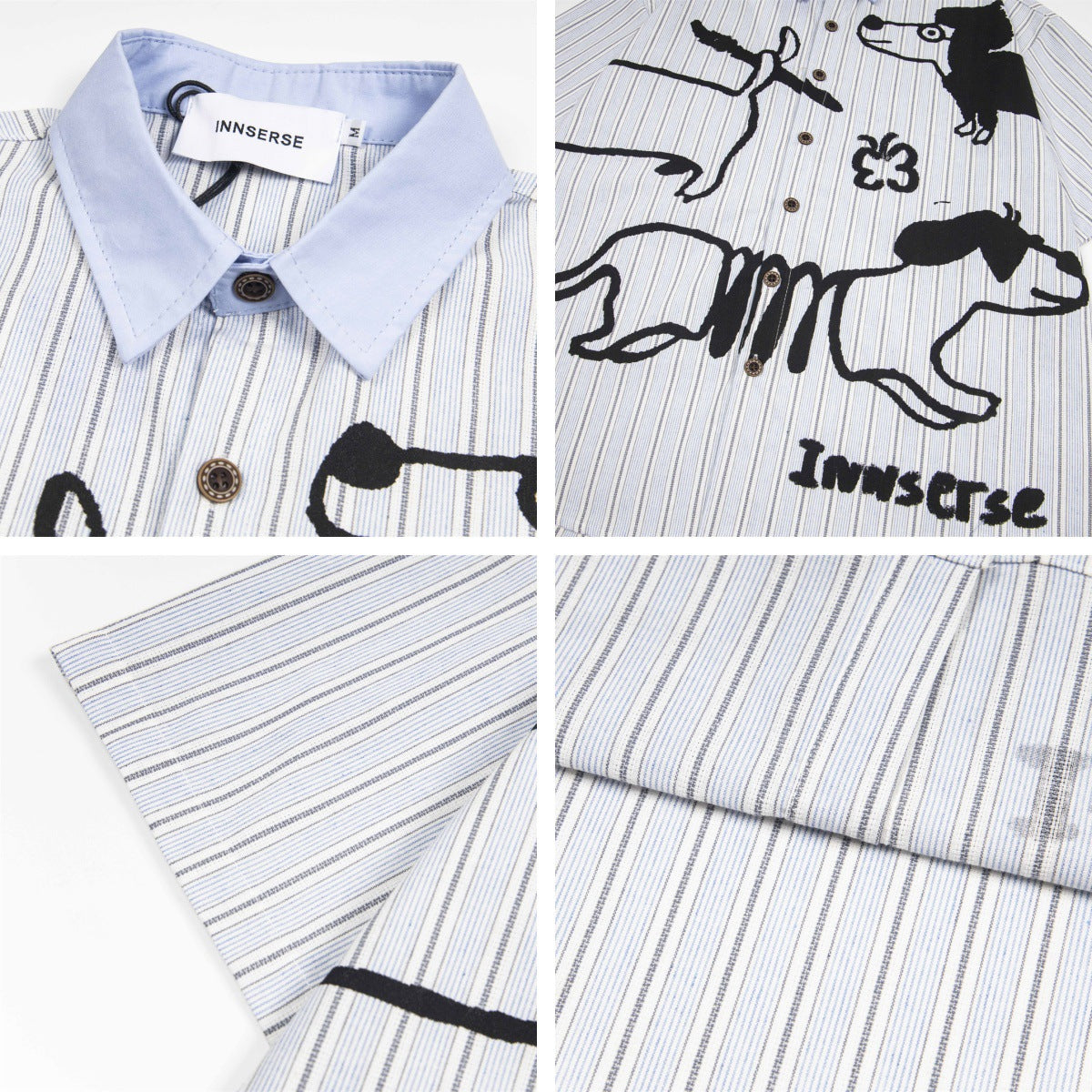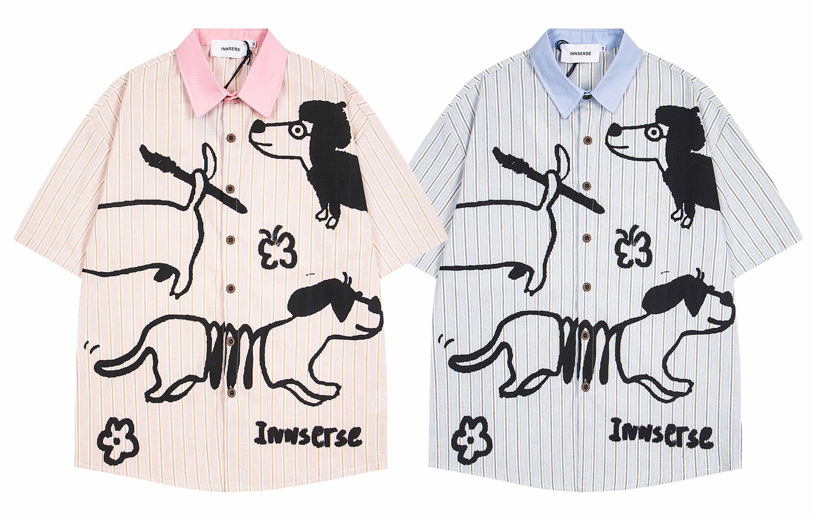 𝕃oose 𝔽it ☞𝟤𝟢𝟤𝟧 ☜美式復古可愛小狗圖短袖條紋寬鬆襯衫 IN-114
