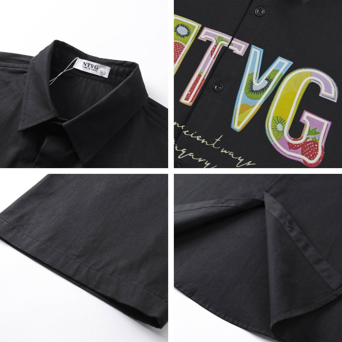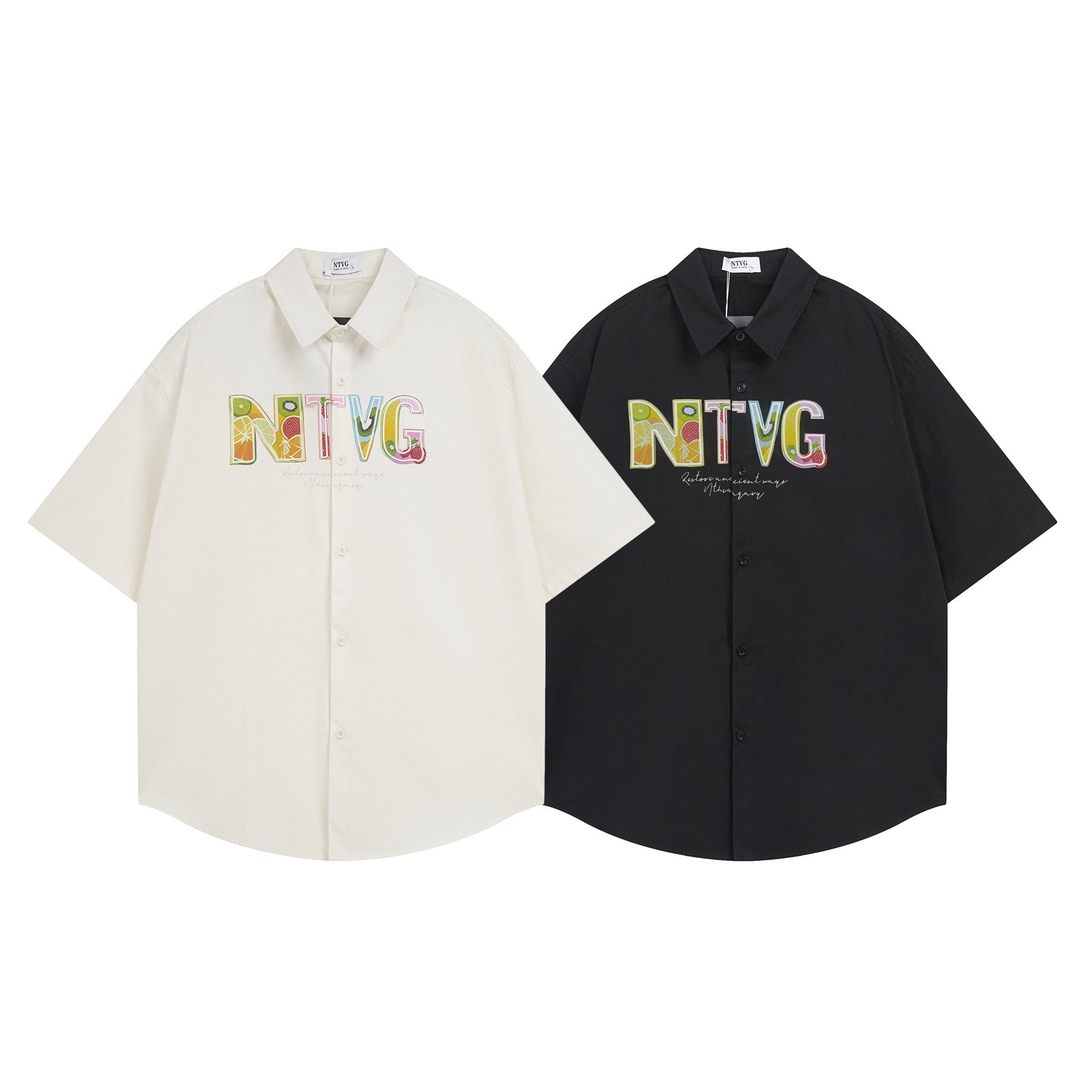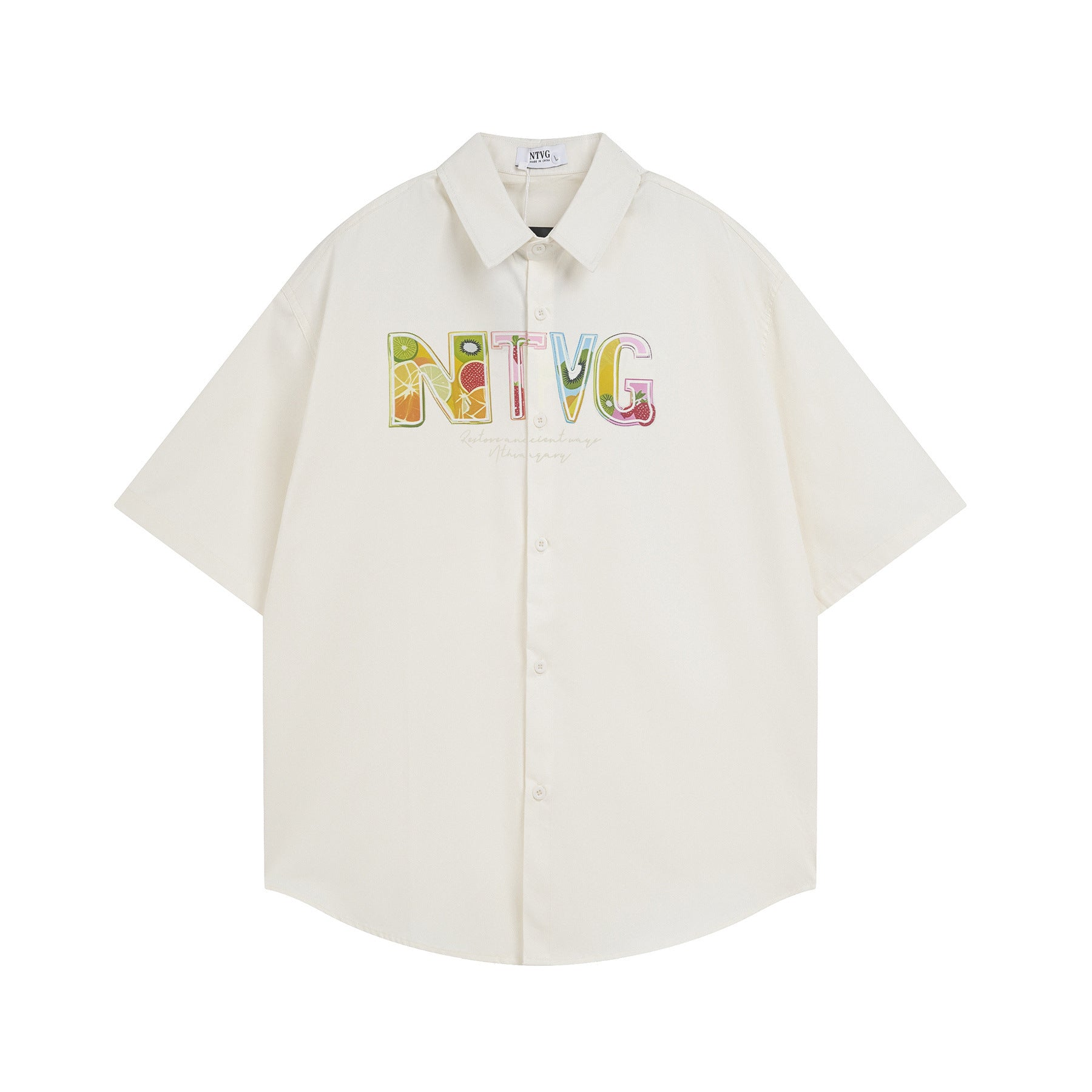 𝕃oose 𝔽it ☞𝟤𝟢𝟤𝟧 ☜美式復古彩色字母印花百搭休閒寬鬆襯衫 ɴᴛ𝟣𝟪 (杏色)
