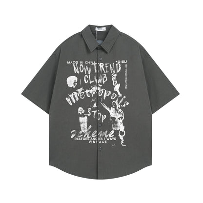 𝕃oose 𝔽it ☞𝟤𝟢𝟤𝟧 ☜美式復古圖案印花百搭休閒寬鬆襯衫 (深灰色)