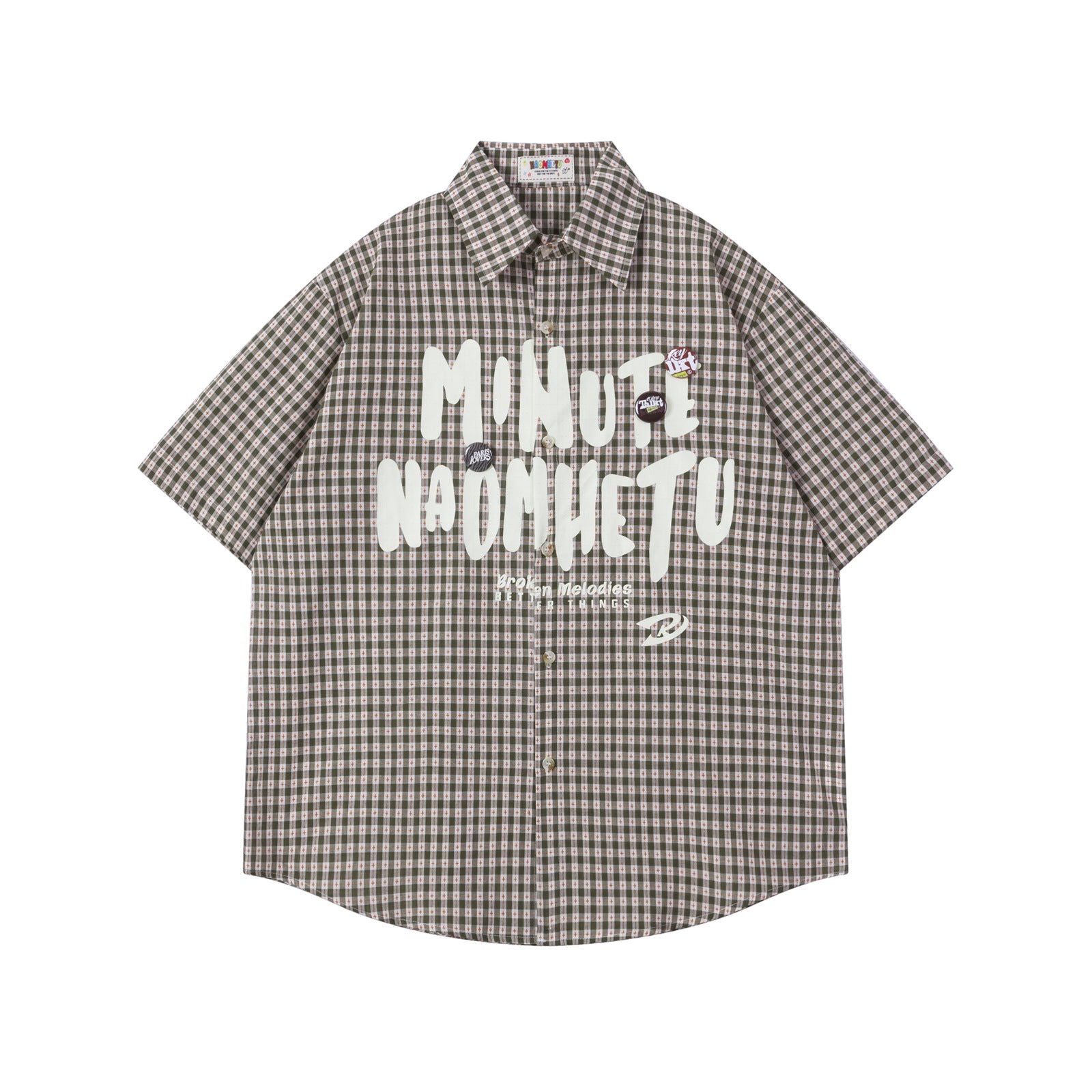 𝕃oose 𝔽it ☞𝟤𝟢𝟤𝟧 ☜美式復古字母印花短袖襯衫N-30