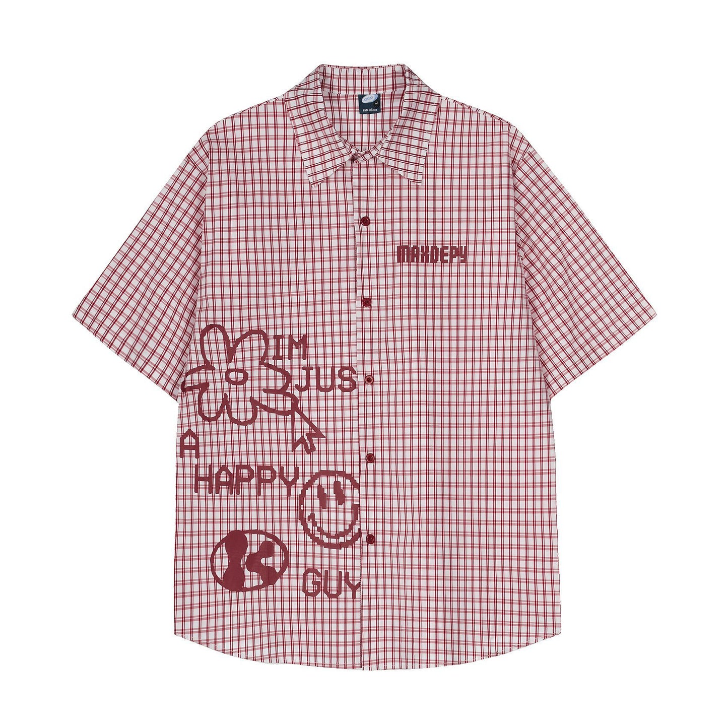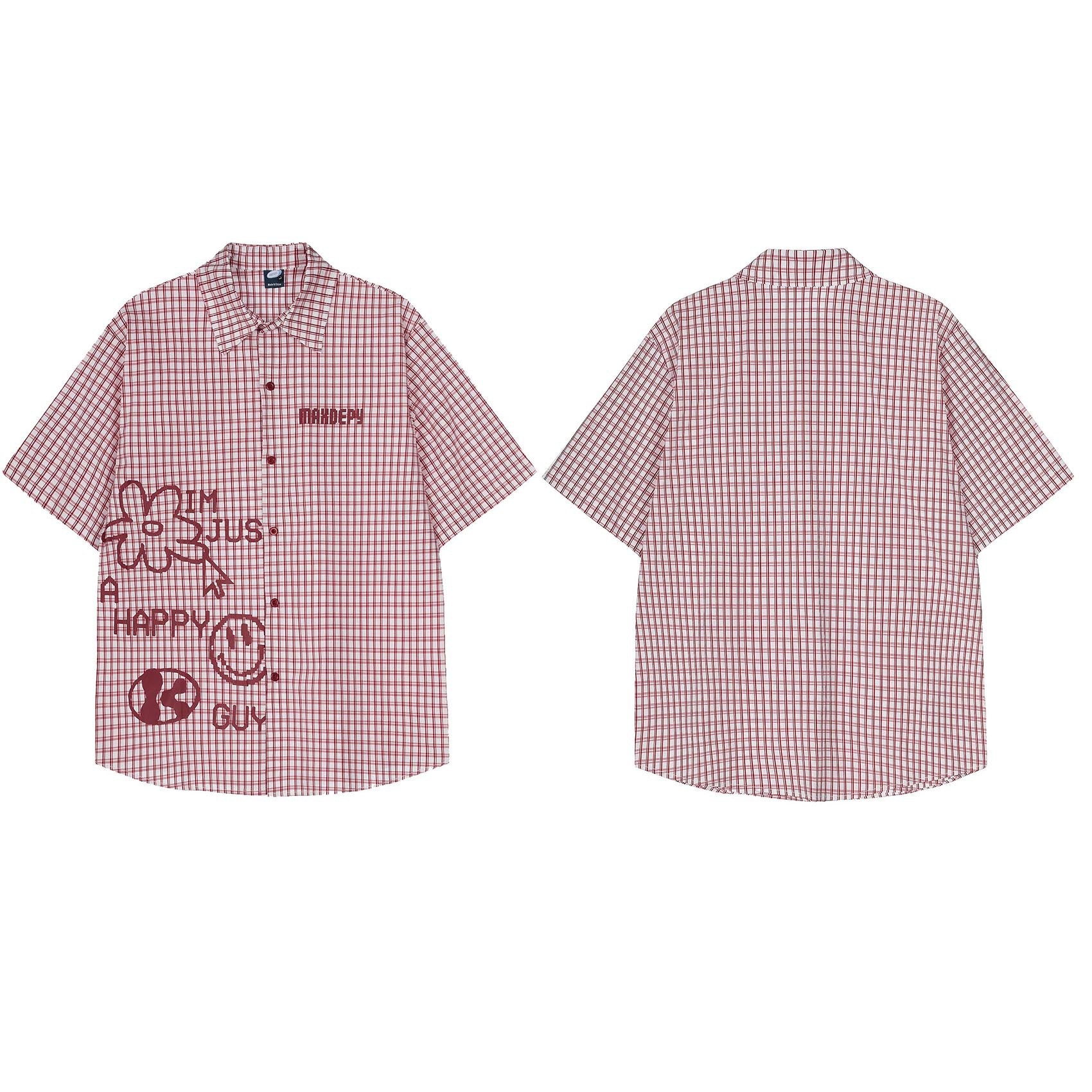 𝕃oose 𝔽it ☞𝟤𝟢𝟤𝟧 ☜美式復古笑臉印花短袖襯衫G-61