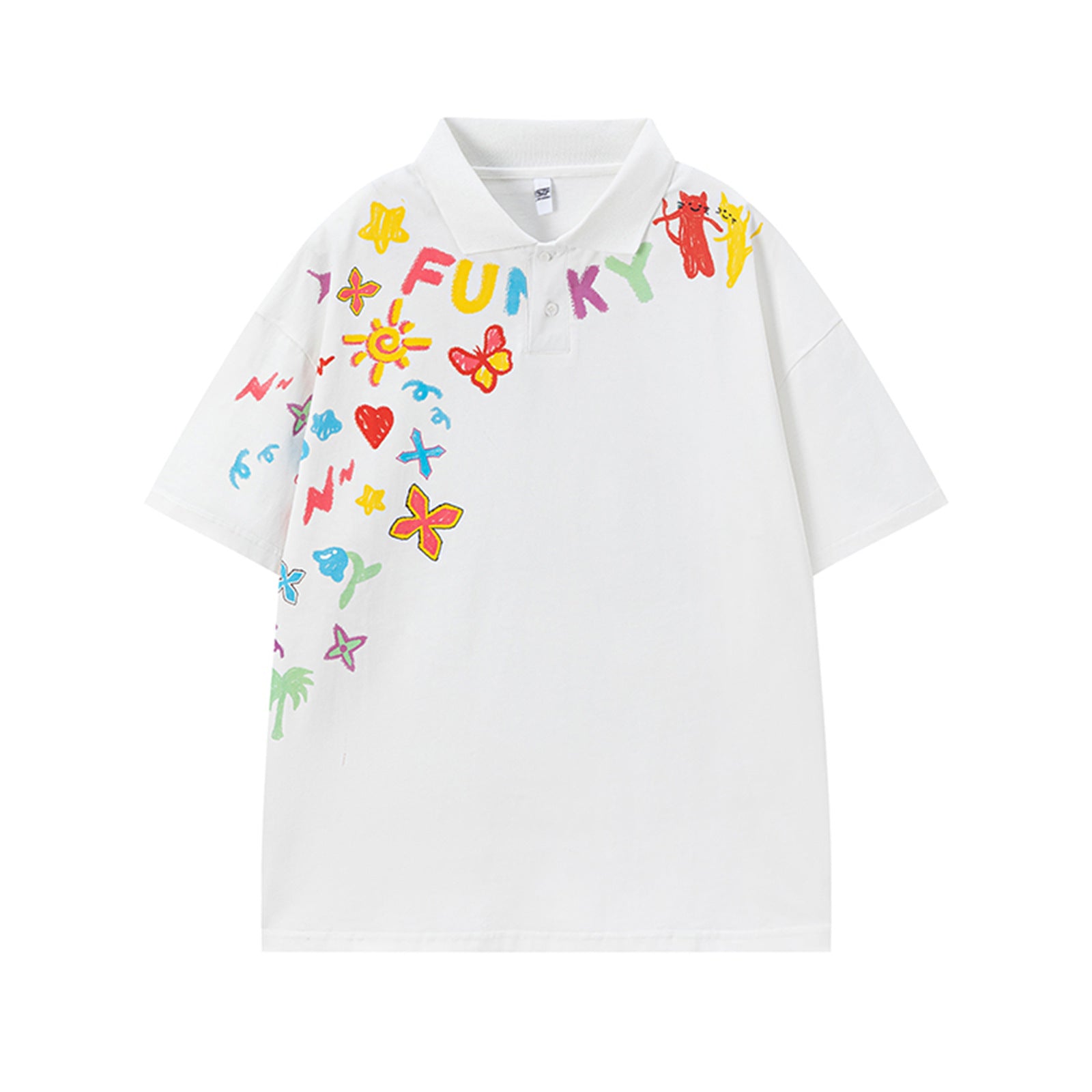 𝕃oose 𝔽it ☞𝟤𝟢𝟤𝟧 ☜美式復古抽象印花翻領寬版上衣SA-02