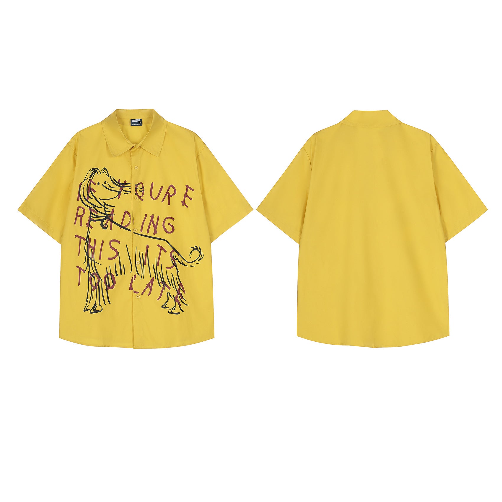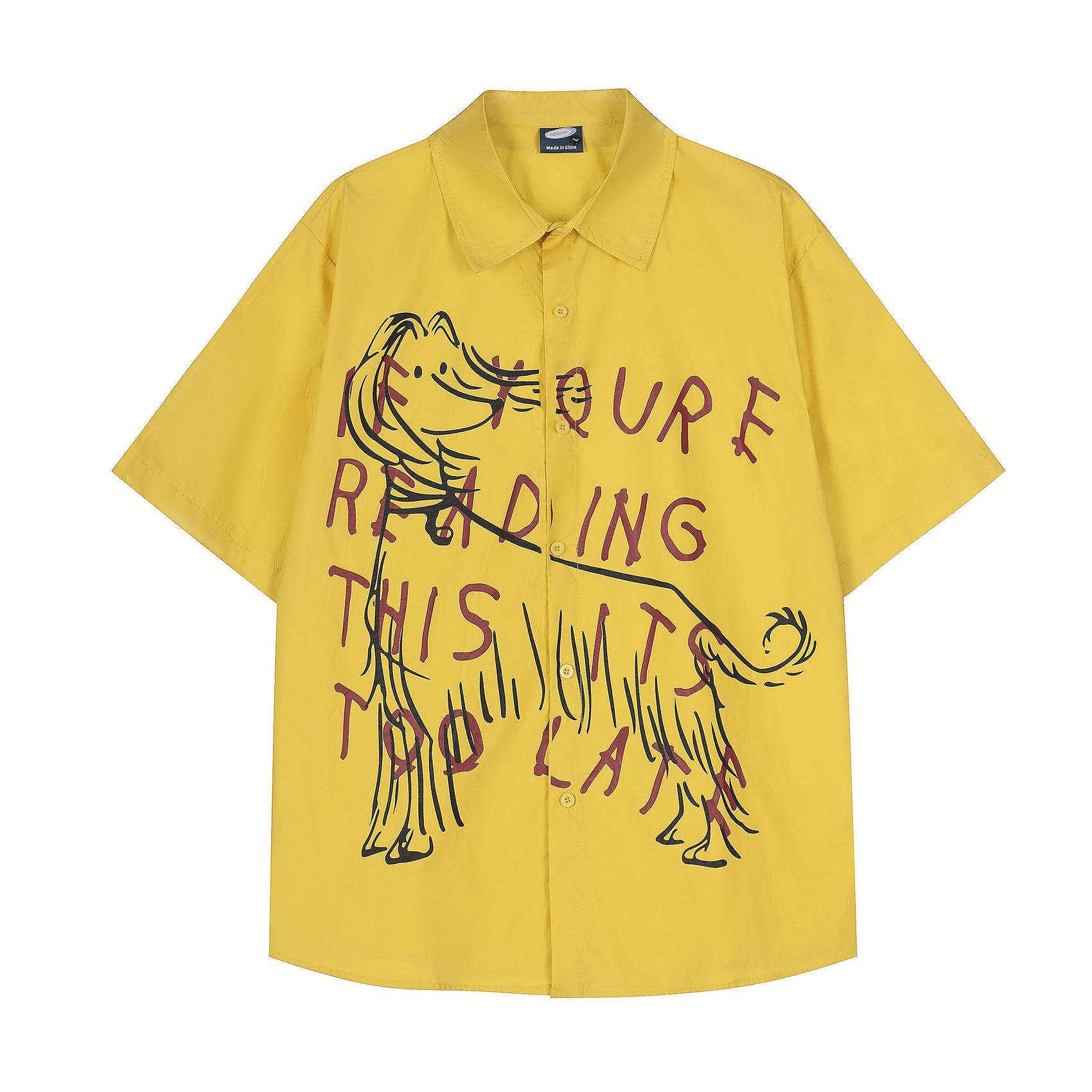 𝕃oose 𝔽it ☞𝟤𝟢𝟤𝟧 ☜美式復古小狗印花短袖襯衫 G-63