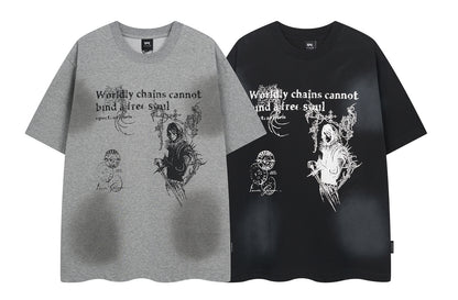 𝕃oose 𝔽it ☞𝟤𝟢𝟤𝟧 ☜美式復古少女印花男女中性 T-Shirt寬版上衣 SP-56