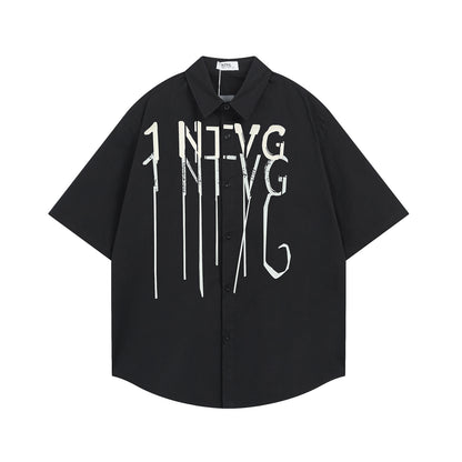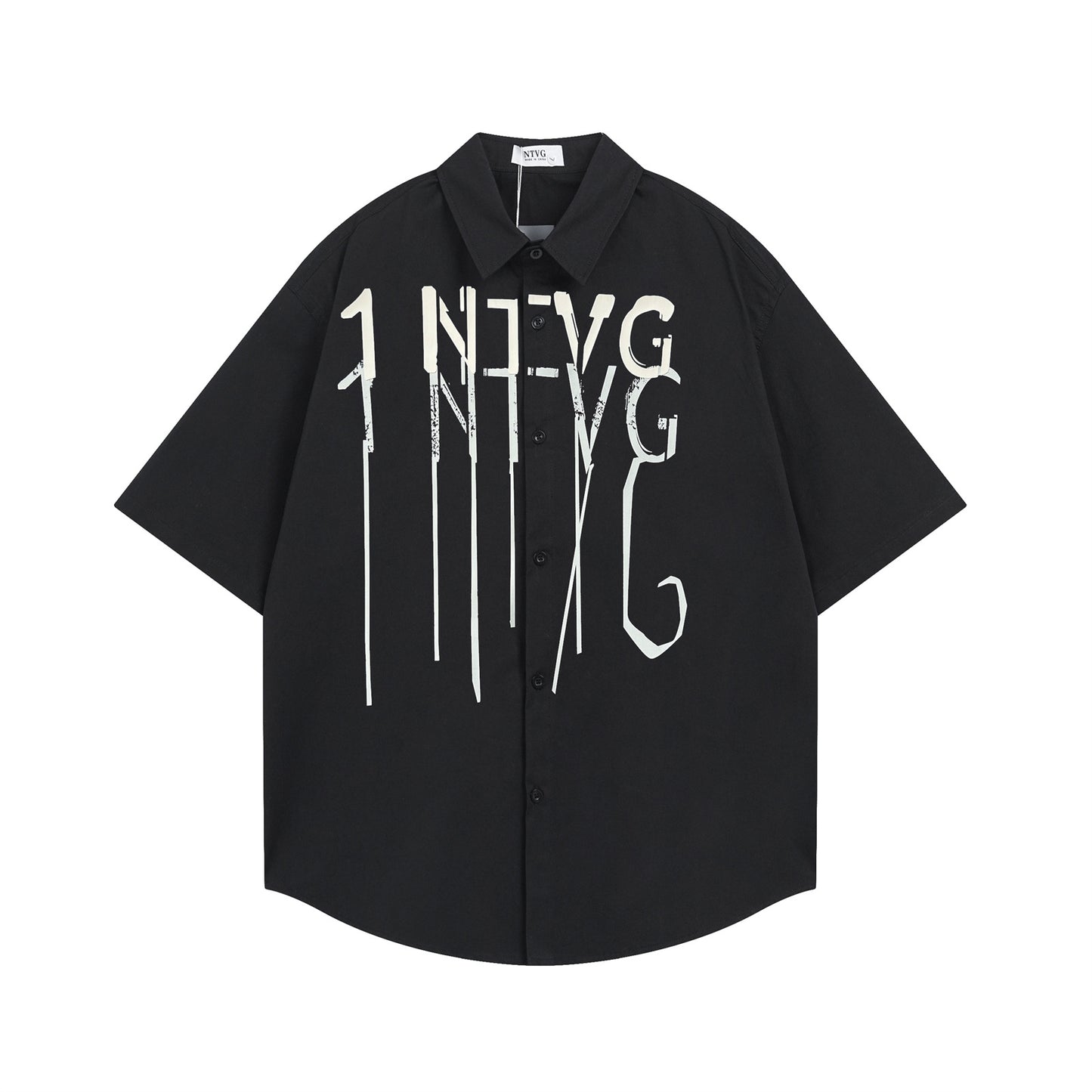 𝕃oose 𝔽it ☞𝟤𝟢𝟤𝟧 ☜春夏新款美式復古印花百搭寬鬆襯衫 ɴᴛ𝟤𝟥 (黑色)