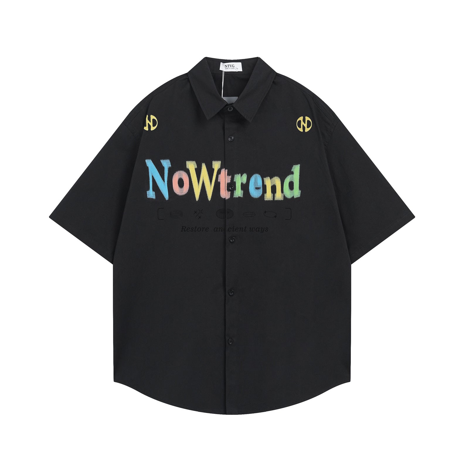 𝕃oose 𝔽it ☞𝟤𝟢𝟤𝟧 ☜美式復古彩色字母印花百搭寬鬆襯衫 ɴᴛ𝟤𝟦 (黑色)