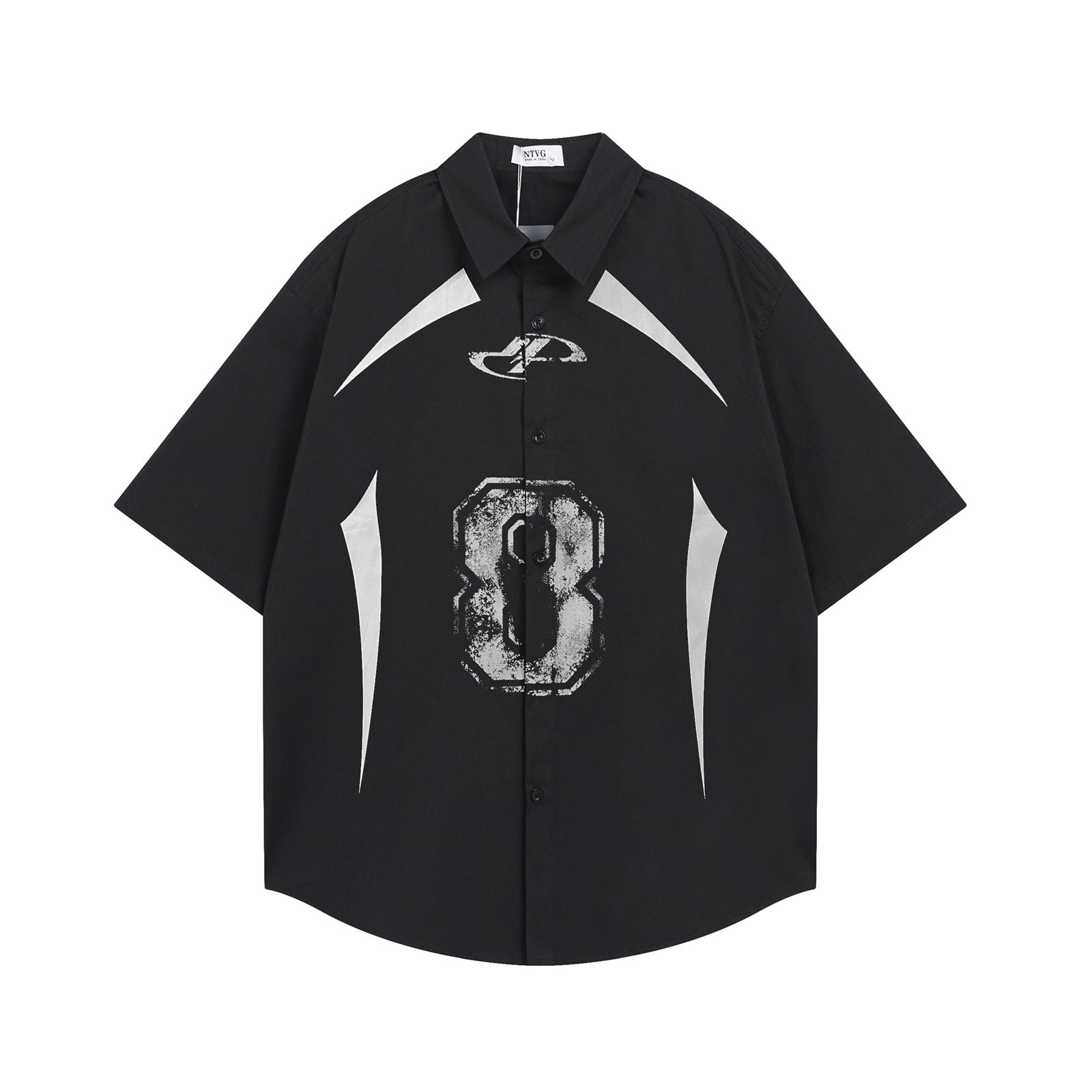 𝕃oose 𝔽it ☞𝟤𝟢𝟤𝟧 ☜美式復古數字8印花百搭休閒寬鬆襯衫 N-139
