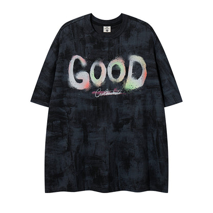 𝕃oose 𝔽it ☞𝟤𝟢𝟤𝟧 ☜美式復古設計感GOOD字母 男女中性 T-Shirt寬版上衣 LY66