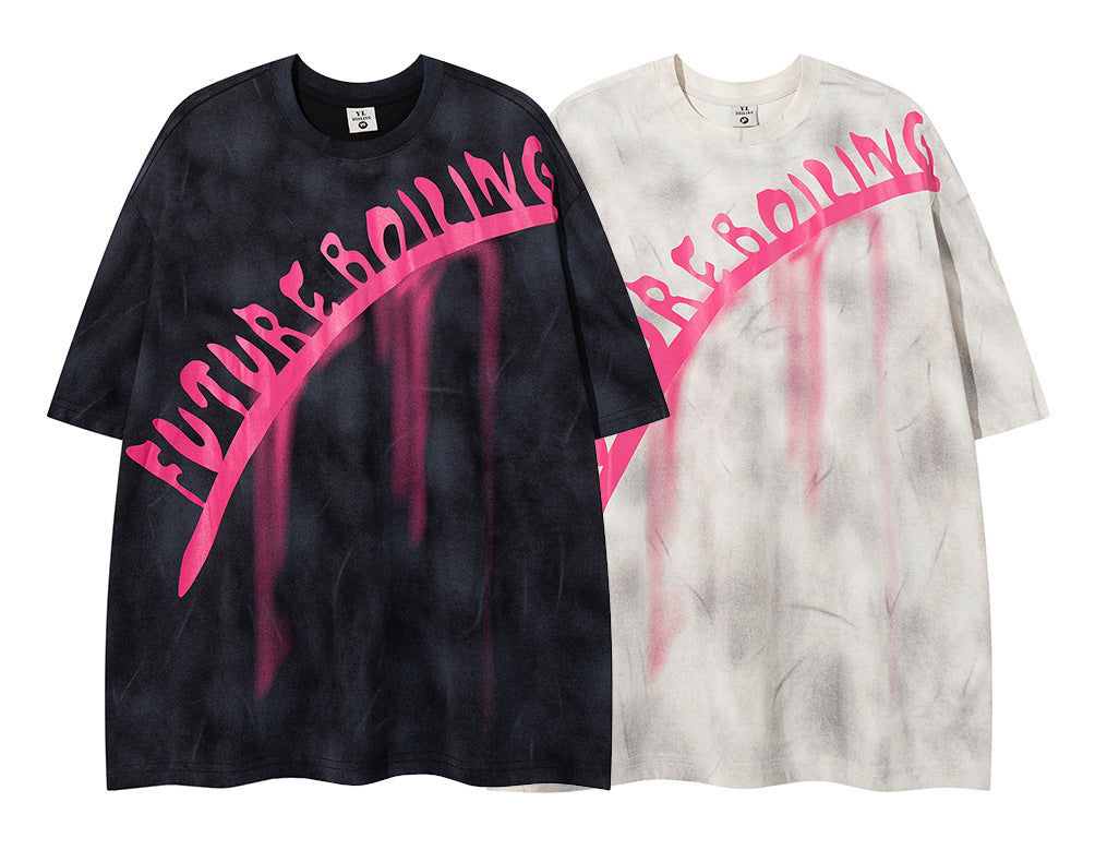 𝕃oose 𝔽it ☞𝟤𝟢𝟤𝟧 ☜美式復古字母印花圓領T-Shirt寬版上衣Y-7