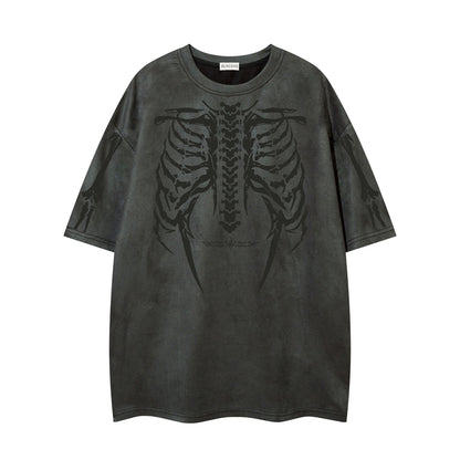 𝕃oose 𝔽it ☞𝟤𝟢𝟤𝟧 ☜美式復古骷髏骨架設計感男女中性 T-Shirt寬版上衣 JK61