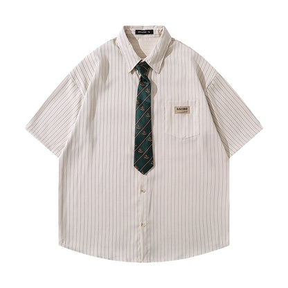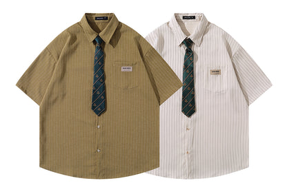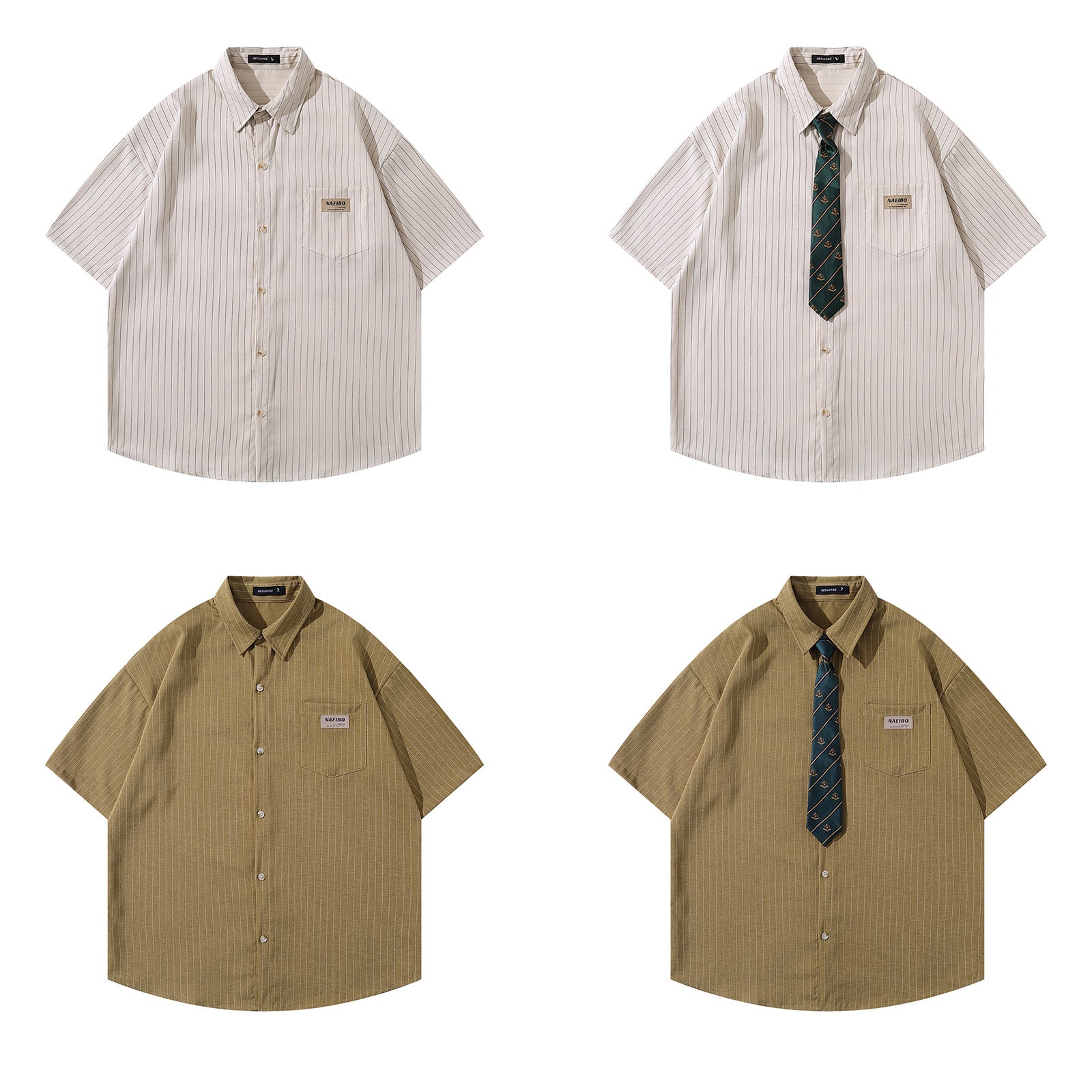 𝕃oose 𝔽it ☞𝟤𝟢𝟤𝟧 ☜領帶系列日式復古學院風百搭休閒短袖襯衫PZ-7