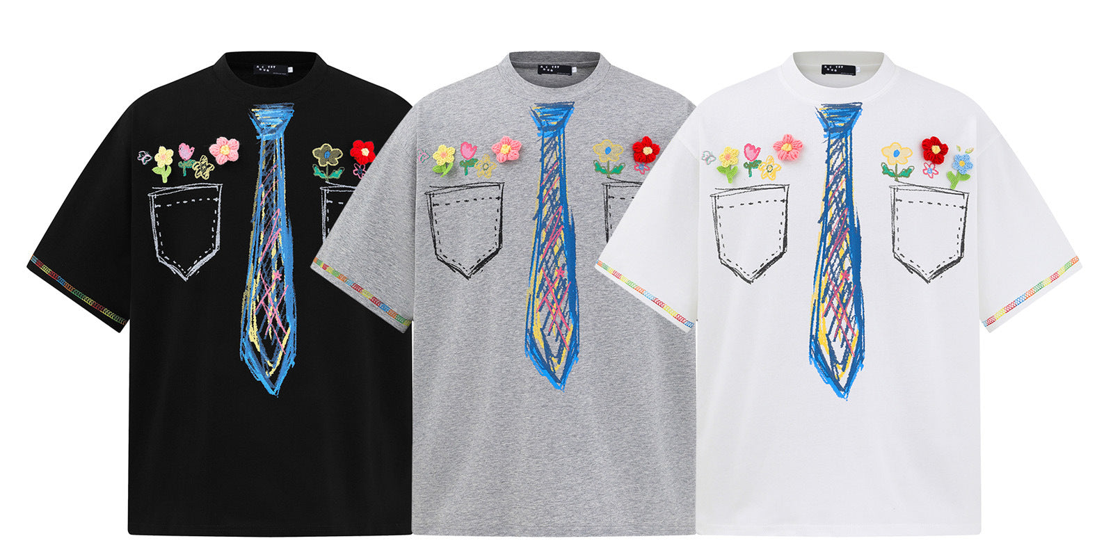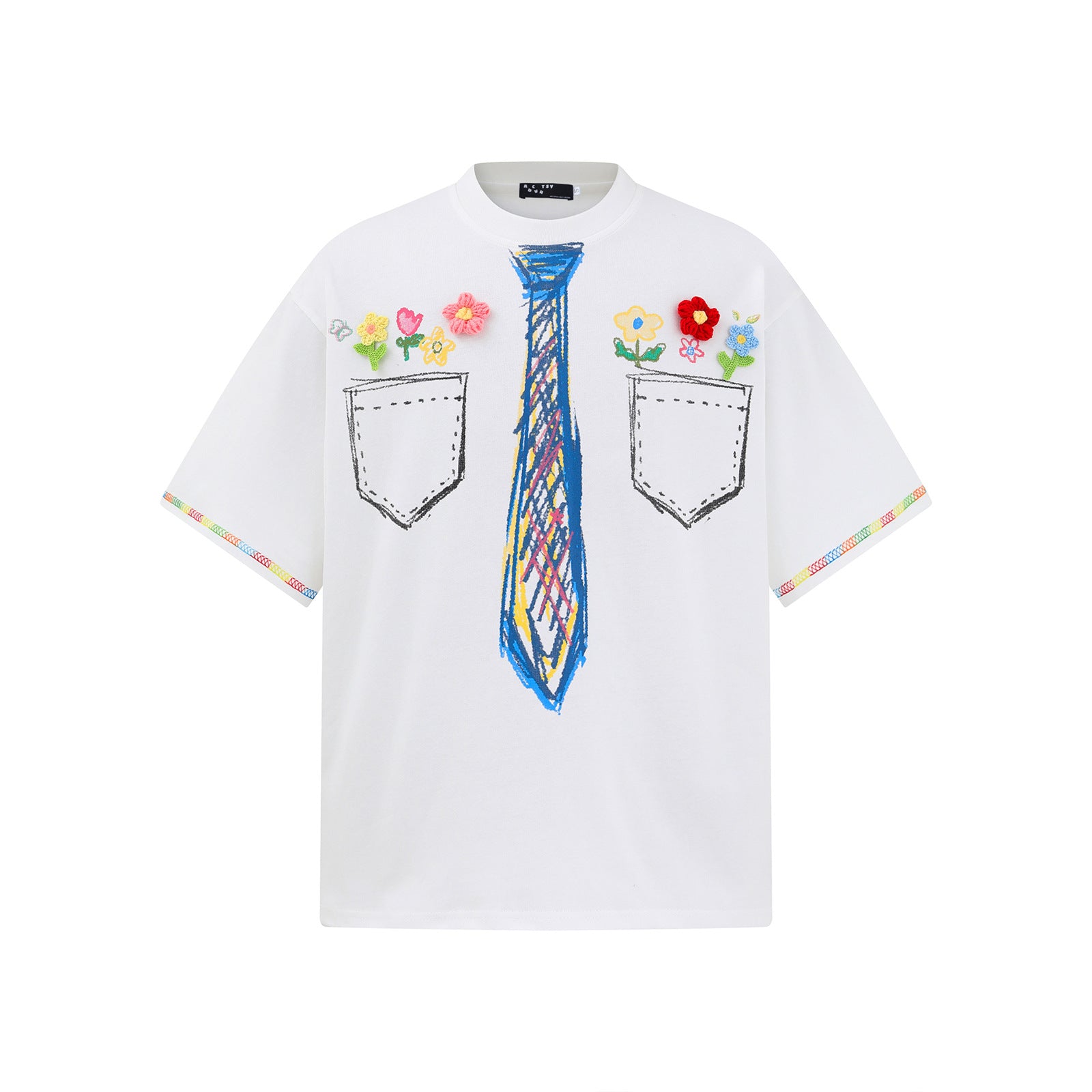 𝕃oose 𝔽it ☞𝟤𝟢𝟤𝟧 ☜領帶系列蠟筆塗鴉圓領寬版上衣A-3
