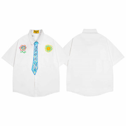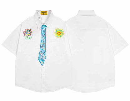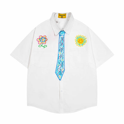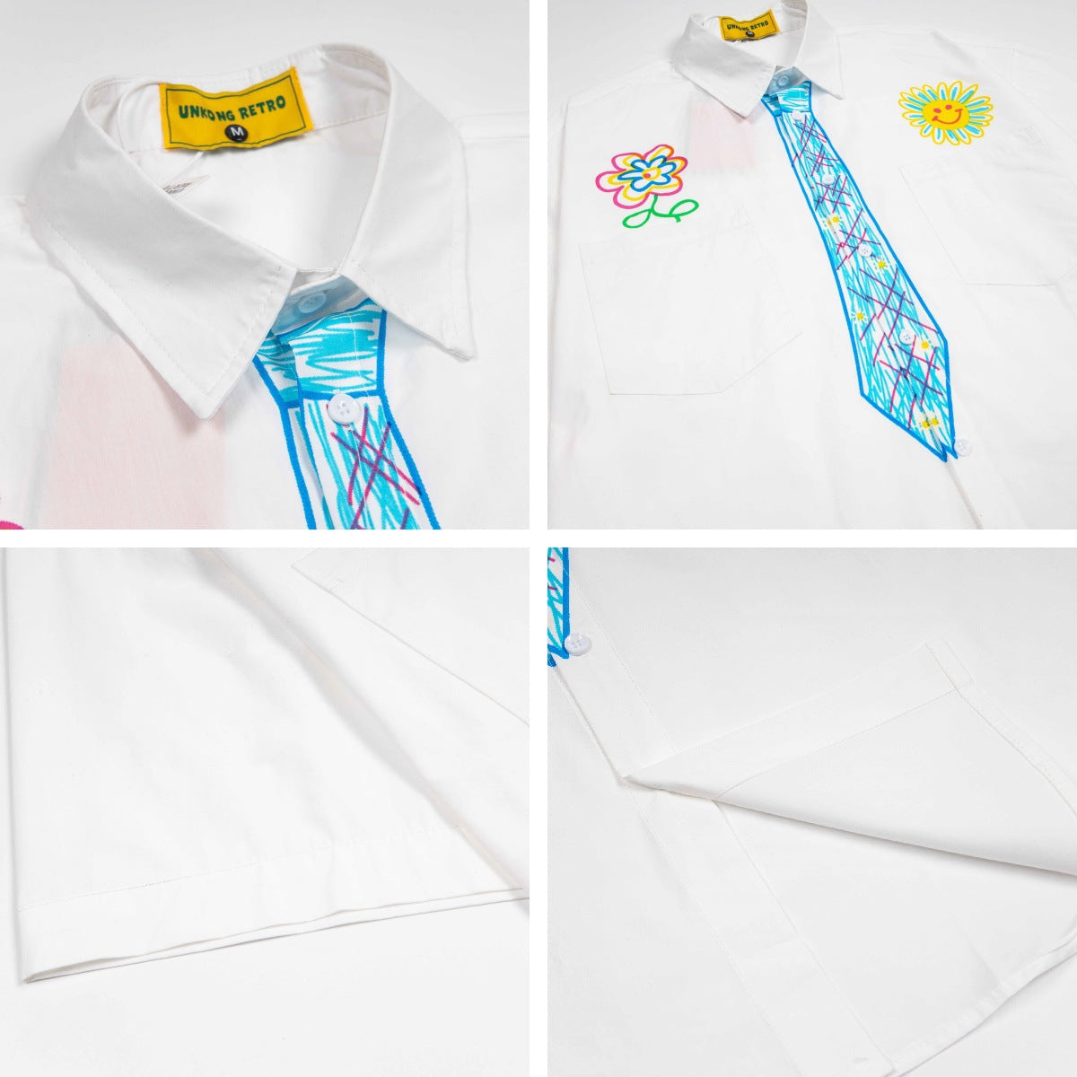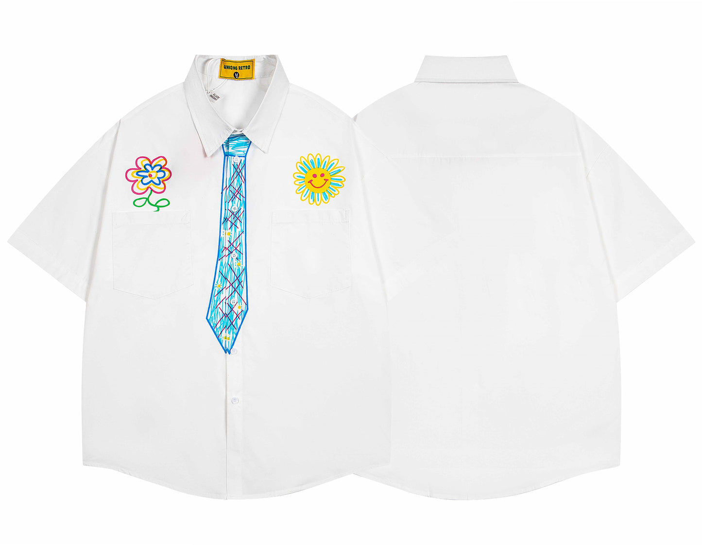 𝕃oose 𝔽it ☞𝟤𝟢𝟤𝟧 ☜領帶系列蠟筆手繪印花百搭休閒寬鬆襯衫U-01