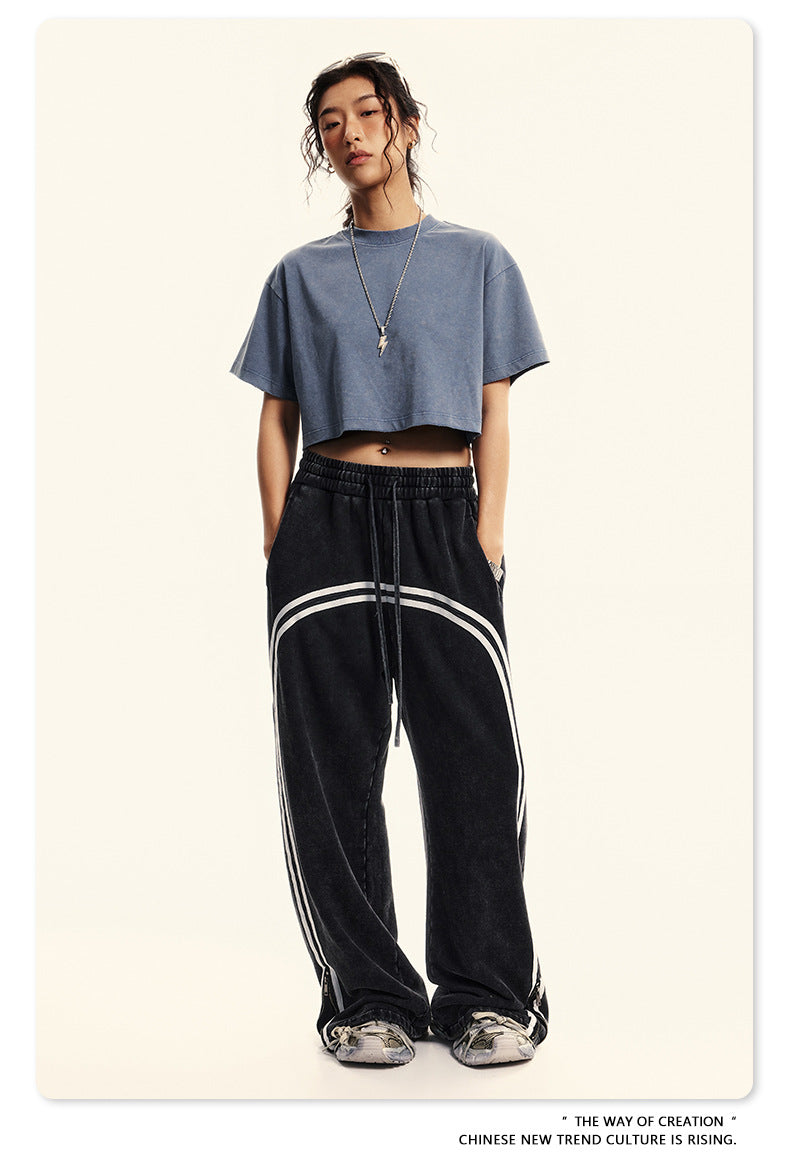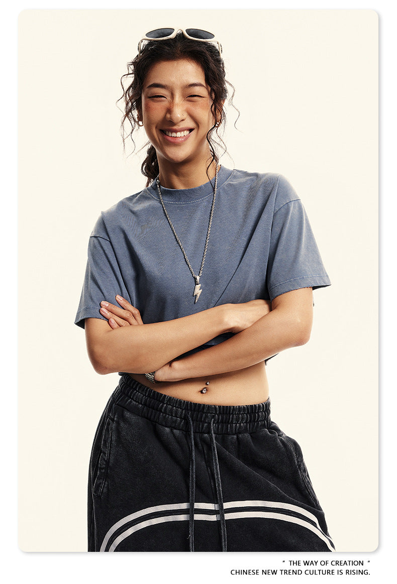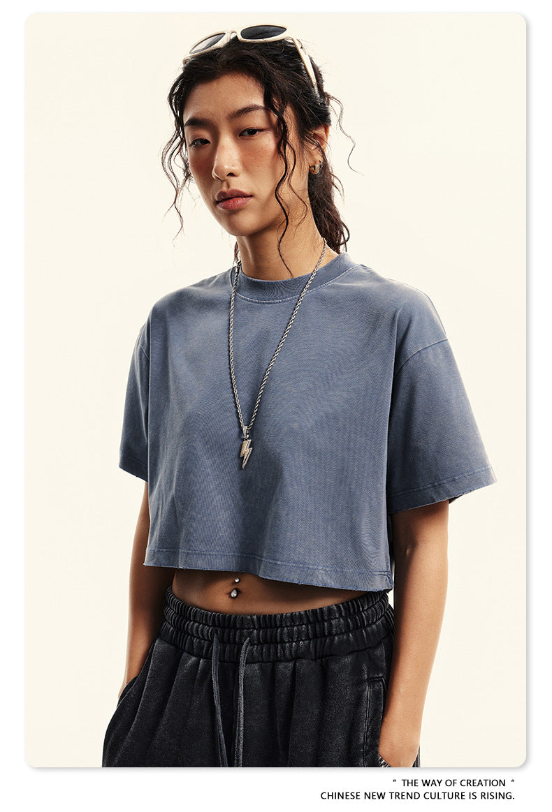 Fierce & Fitted 夏季美式復古做舊辣妹短款T袖N-6 水洗藍