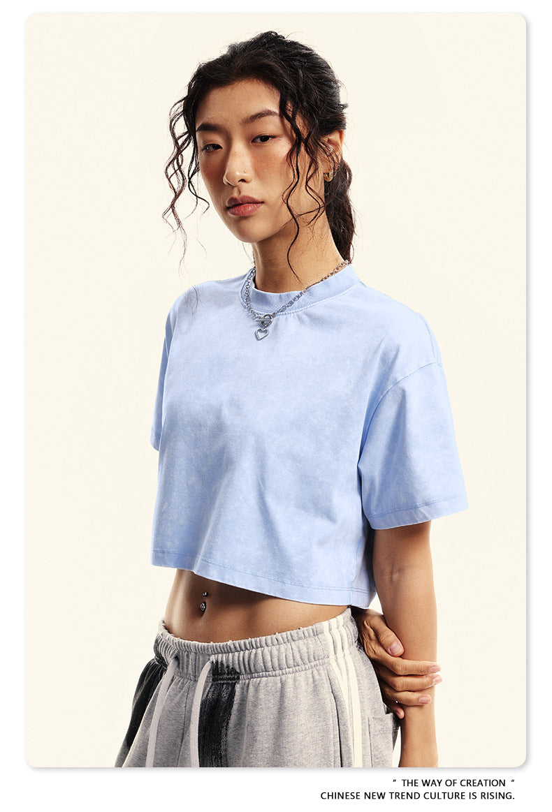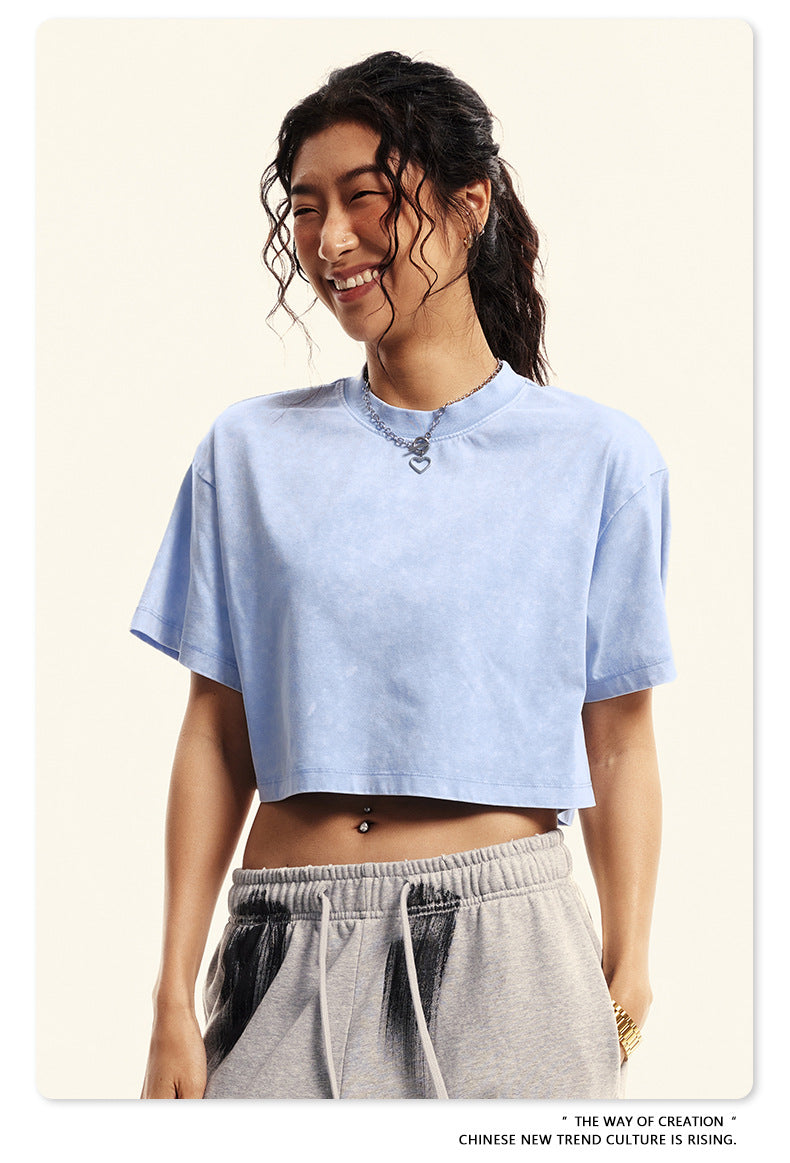 Fierce & Fitted 夏季美式復古做舊辣妹短款T袖N-7 水洗天空藍