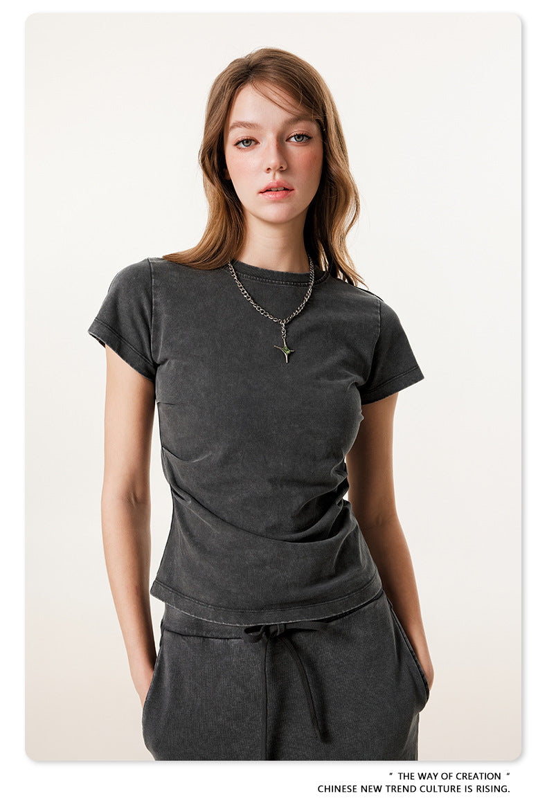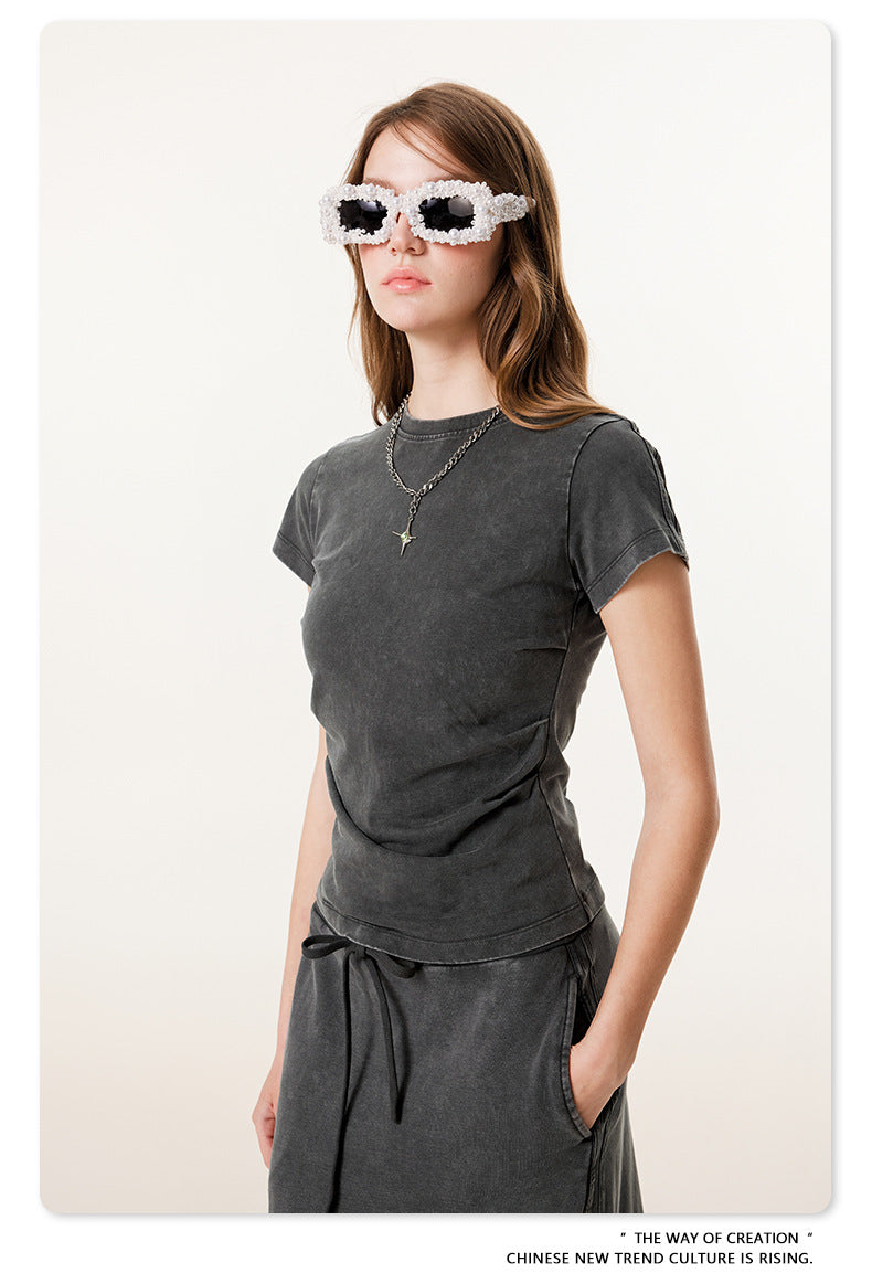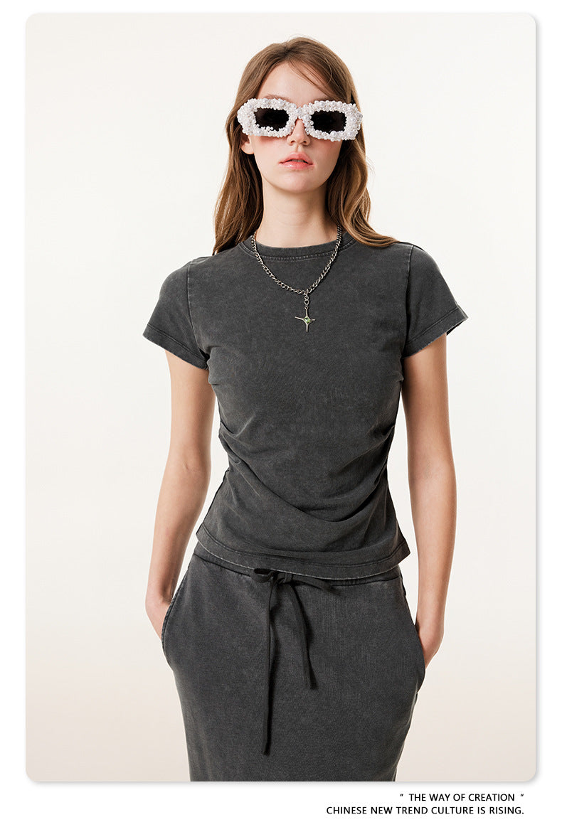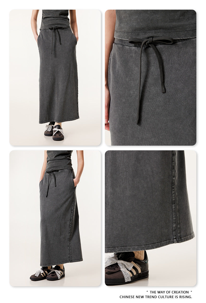 Fierce & Fitted 夏季辣妹必備INS緊身短款上衣 收腰直筒長裙套裝N-7 深灰色