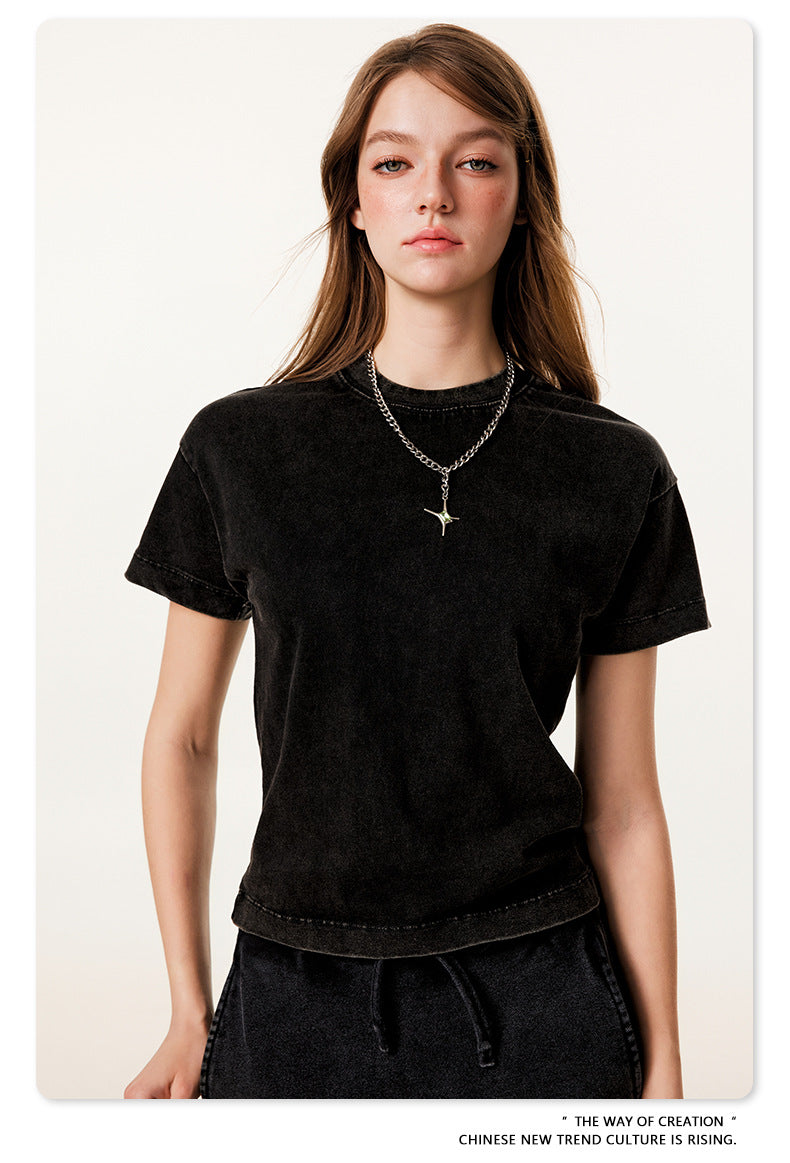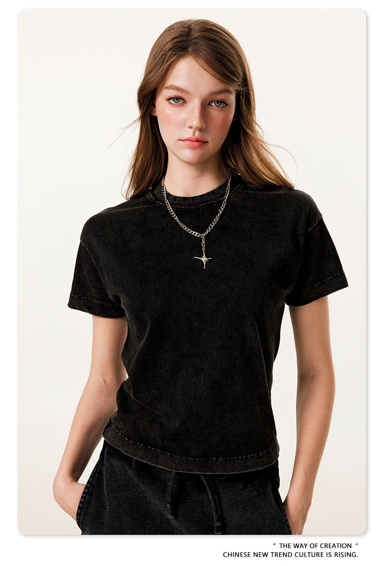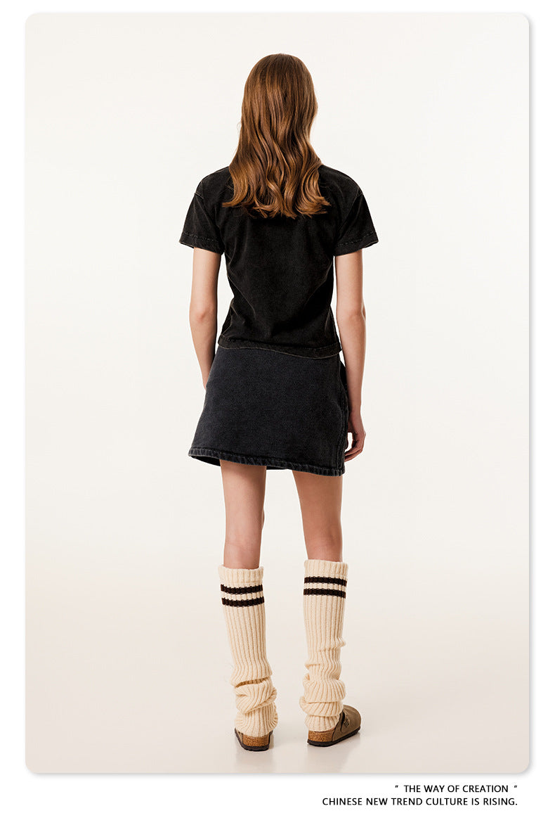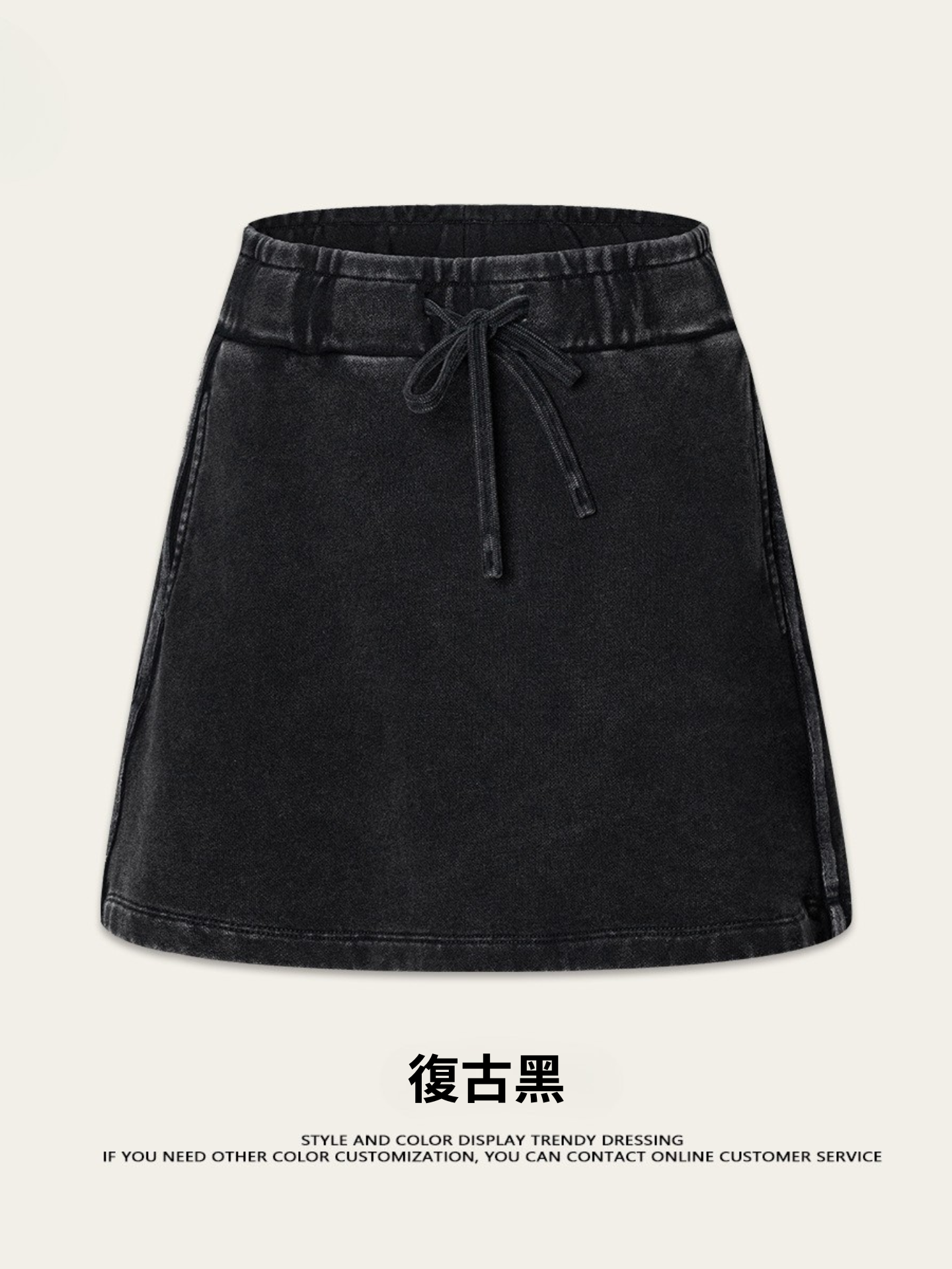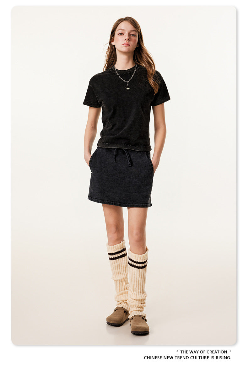 Fierce & Fitted 夏季美式高街水洗短袖上衣A字裙套裝 N-9 復古黑