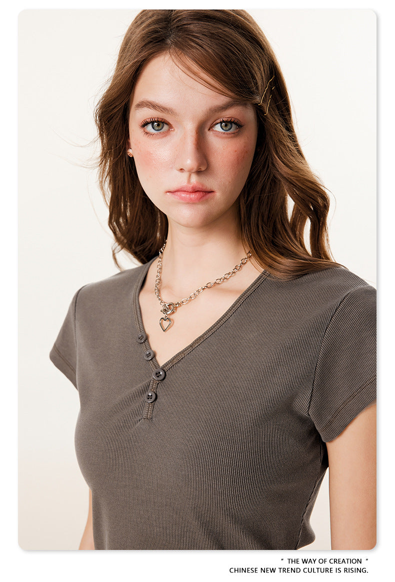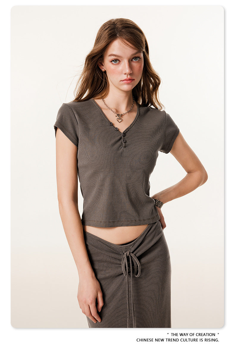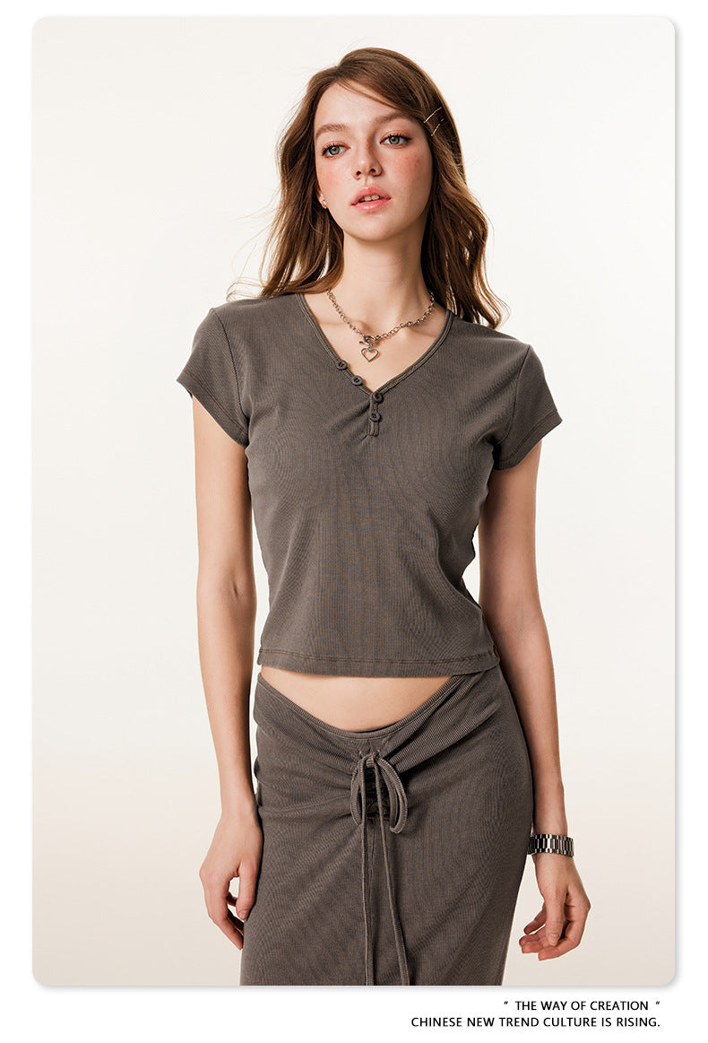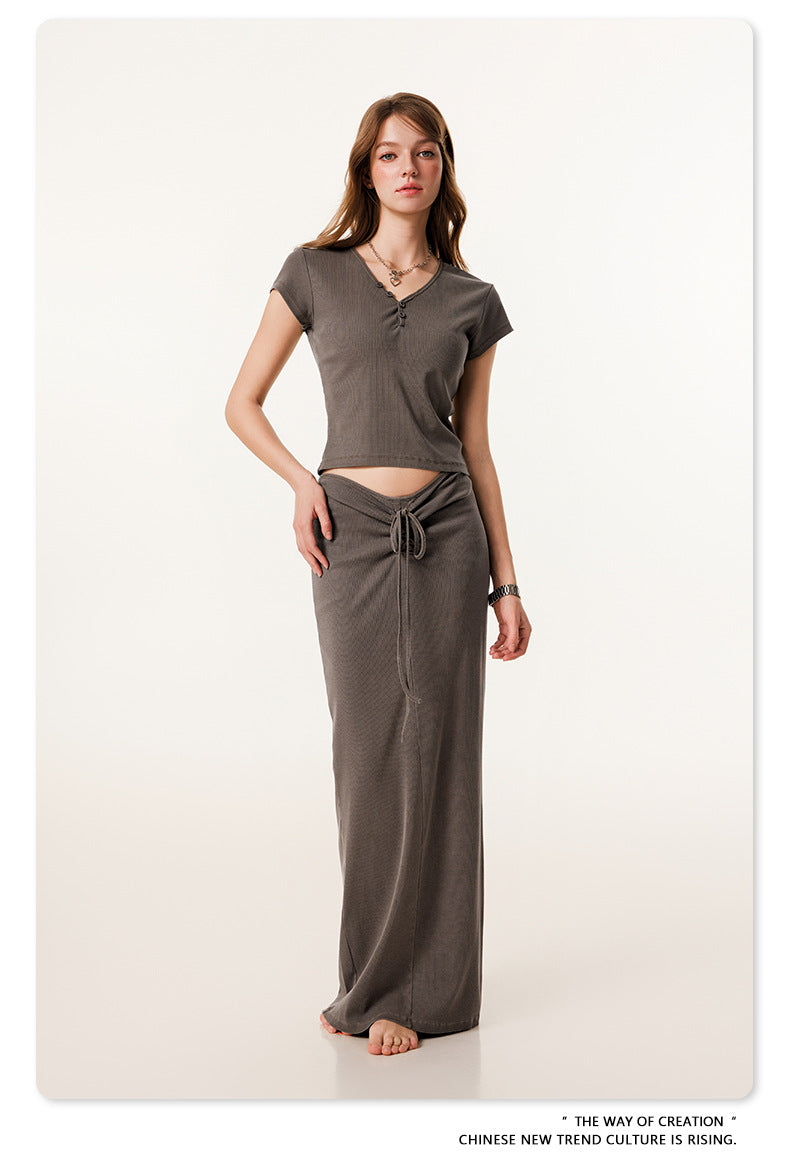 Fierce & Fitted 夏季辣妹必備V領顯瘦短T長裙套裝 咖啡色