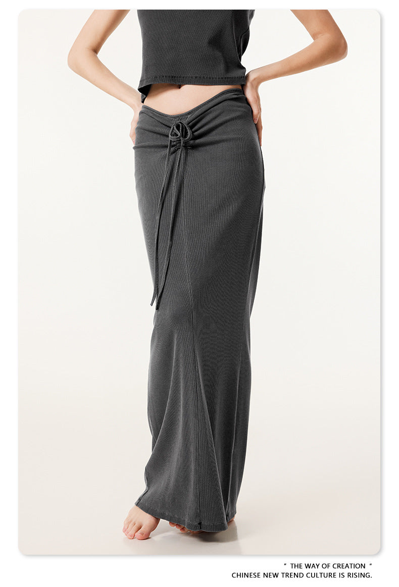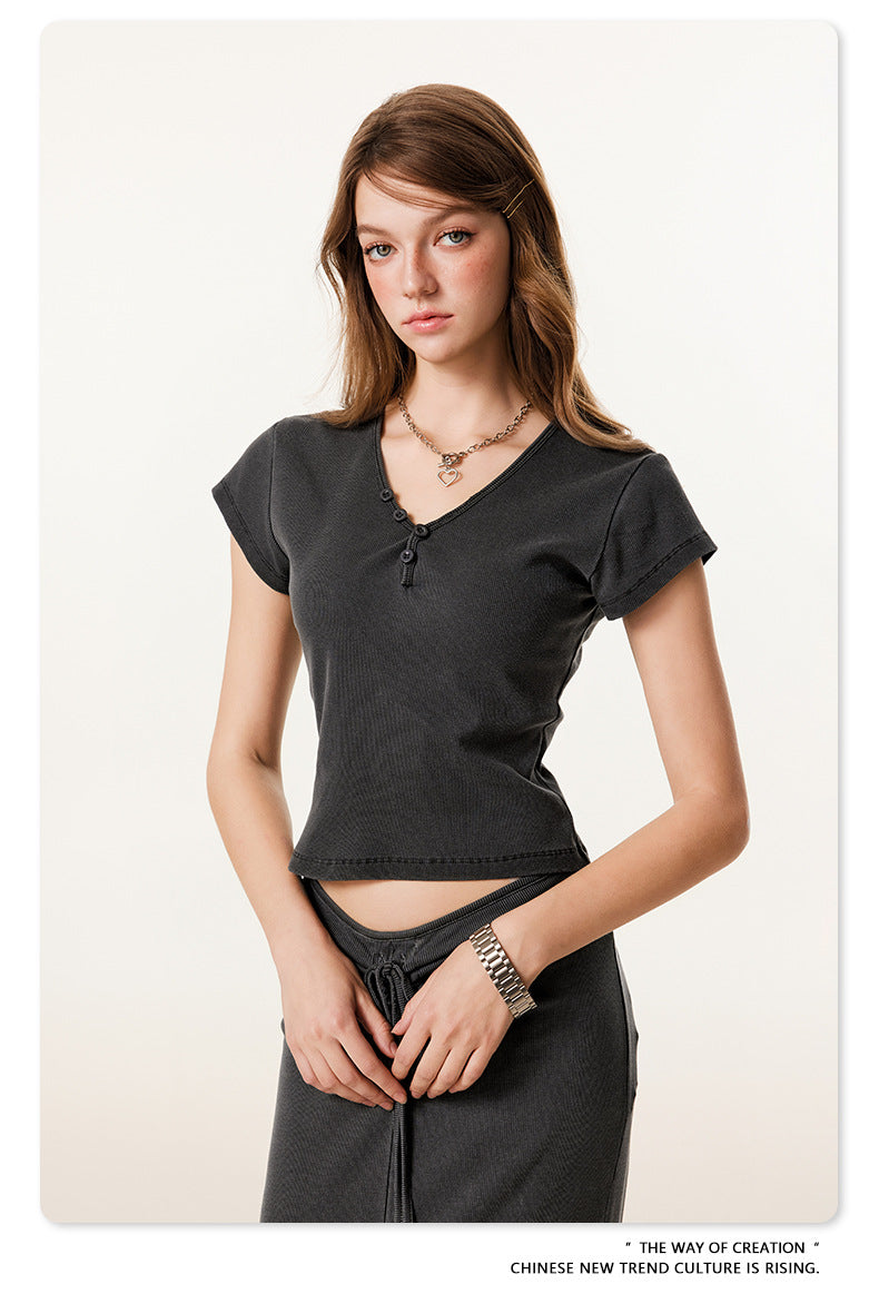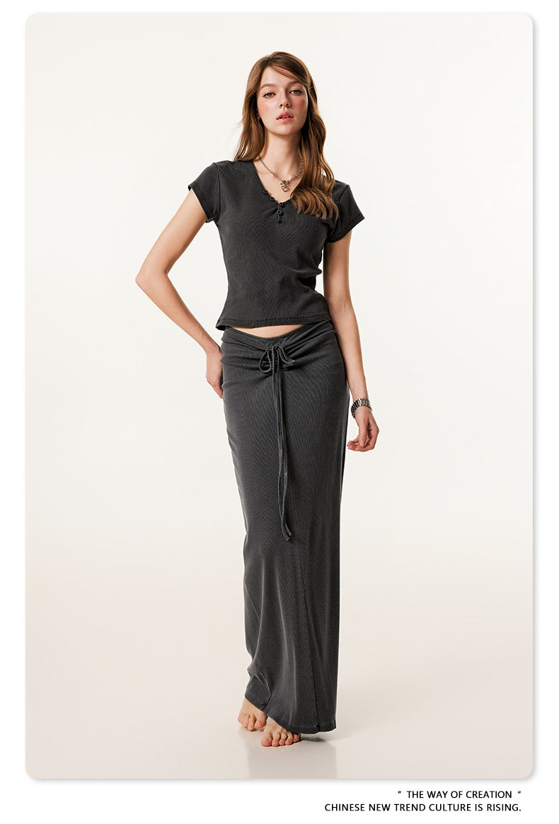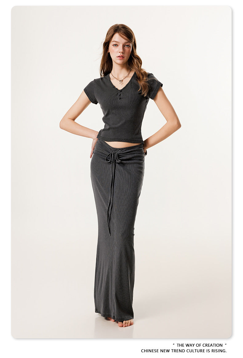 Fierce & Fitted 夏季辣妹必備V領顯瘦短T長裙套裝 深灰色