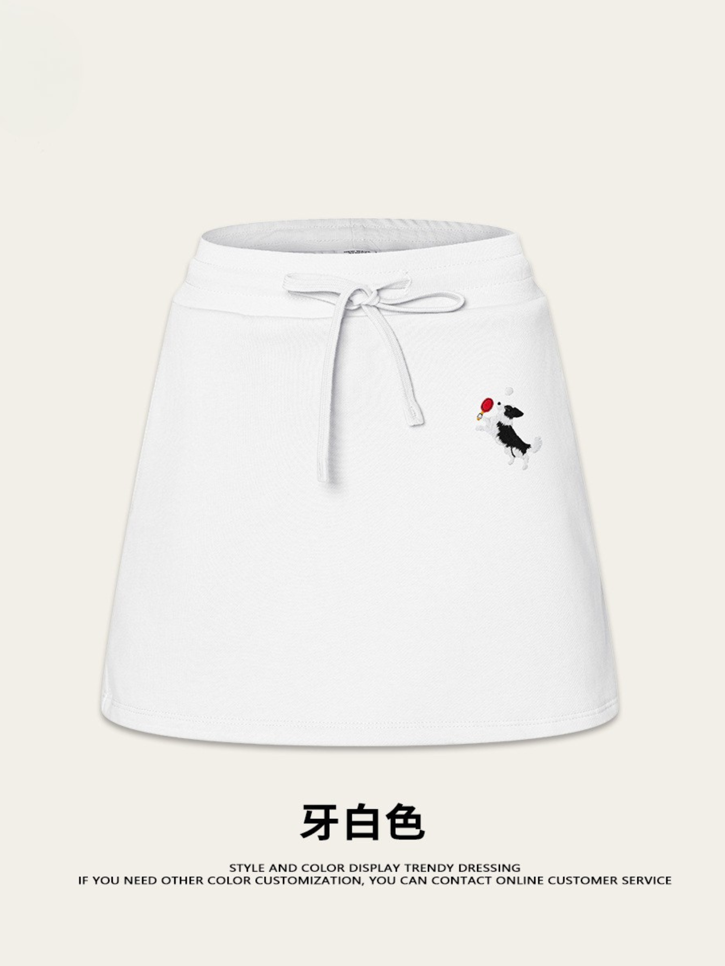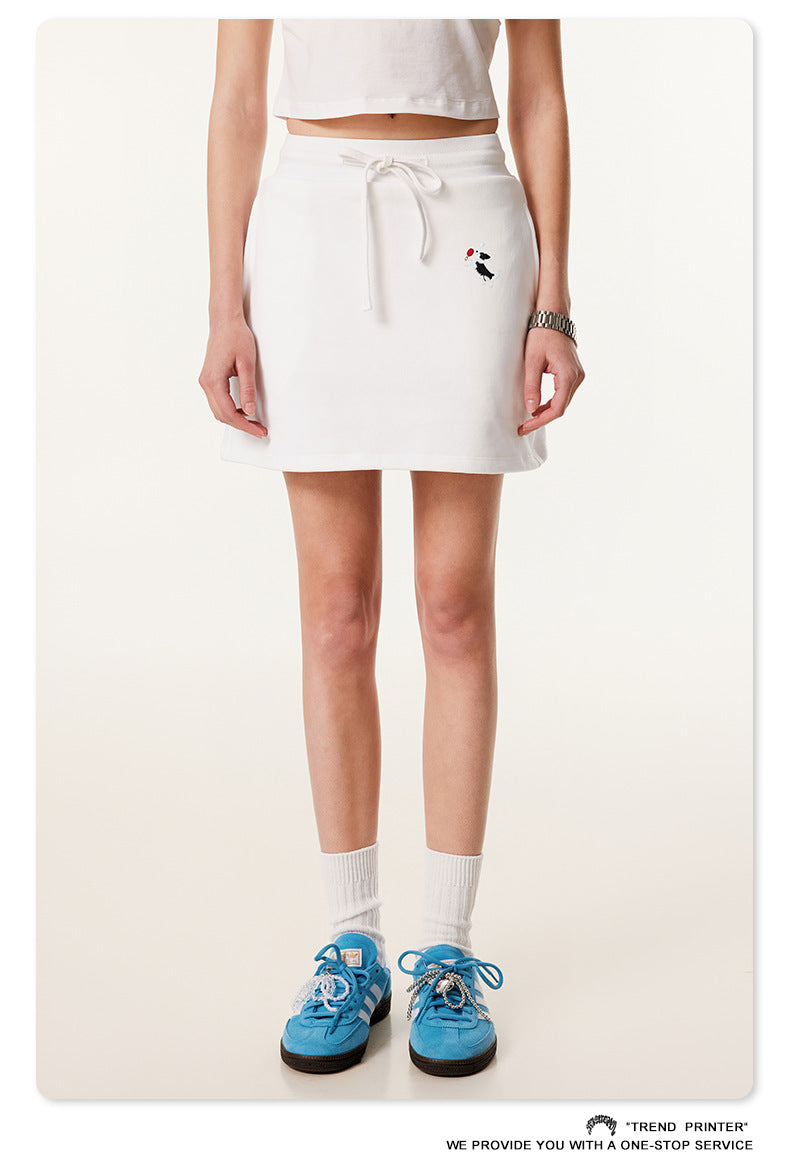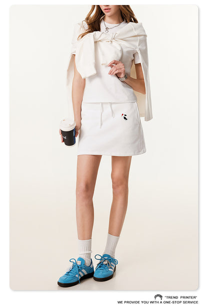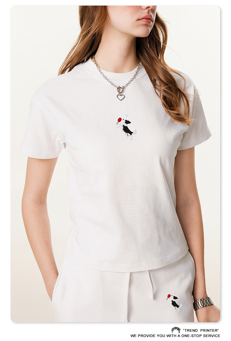Fierce & Fitted 美式夏季甜妹小狗刺繡圓領短T半身裙套裝N-51 牙白色