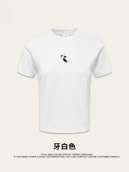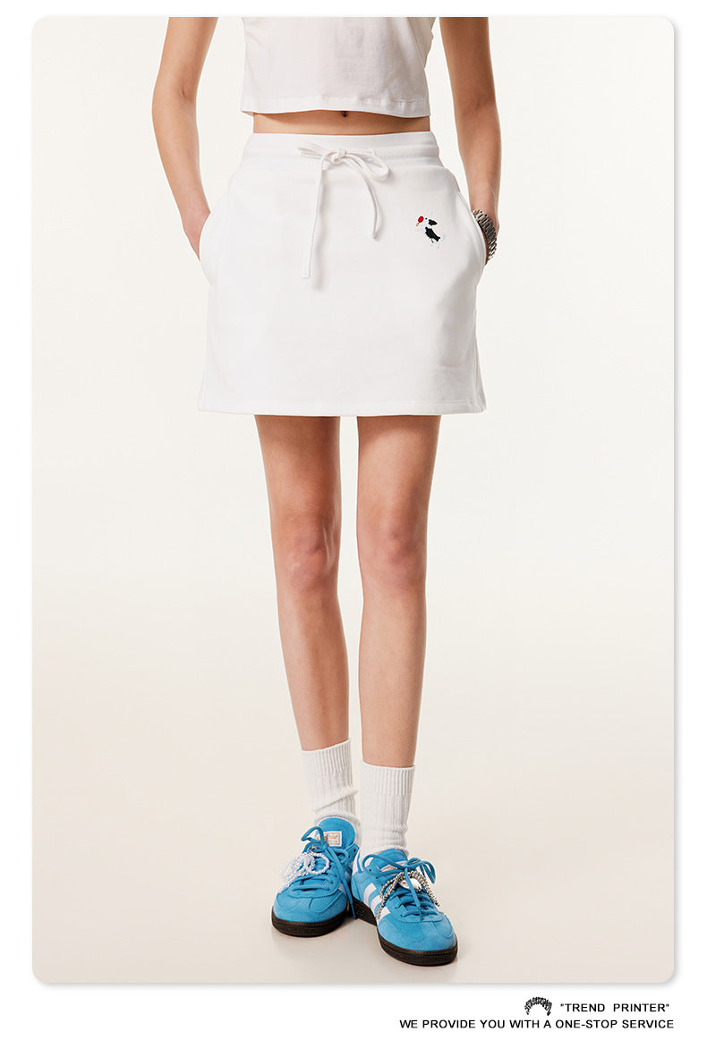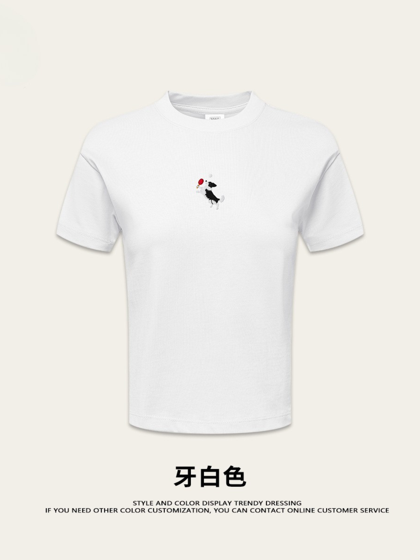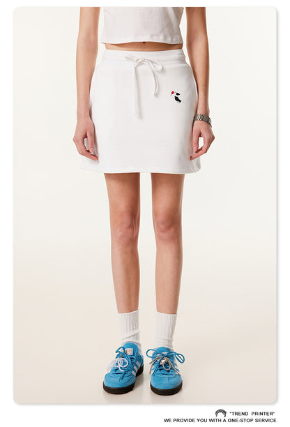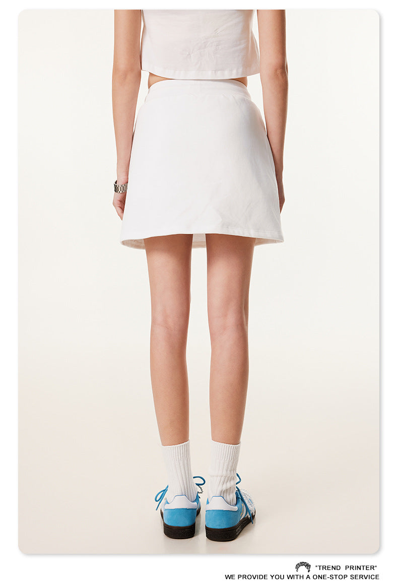 Fierce & Fitted 美式夏季甜妹小狗刺繡圓領短T半身裙套裝N-51 牙白色
