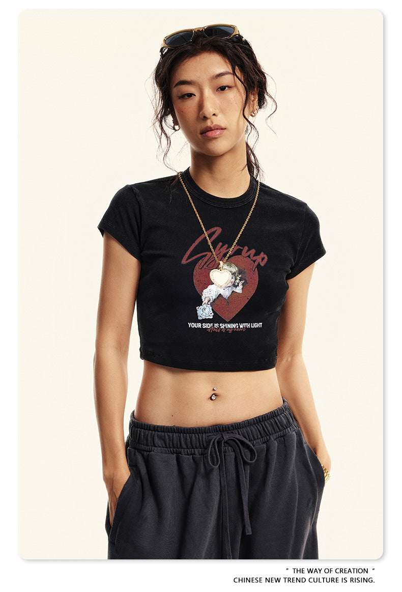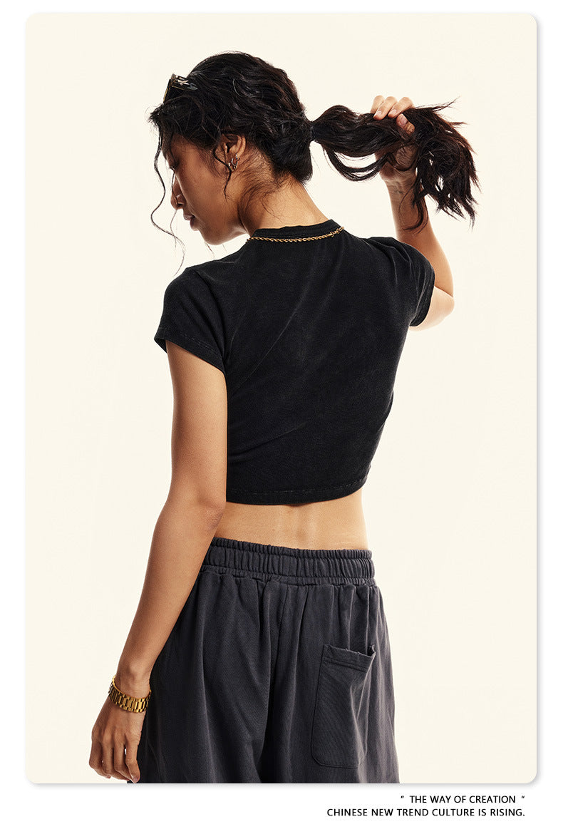 Fierce & Fitted 美式夏季修身辣妹短版上衣G46 復古黑
