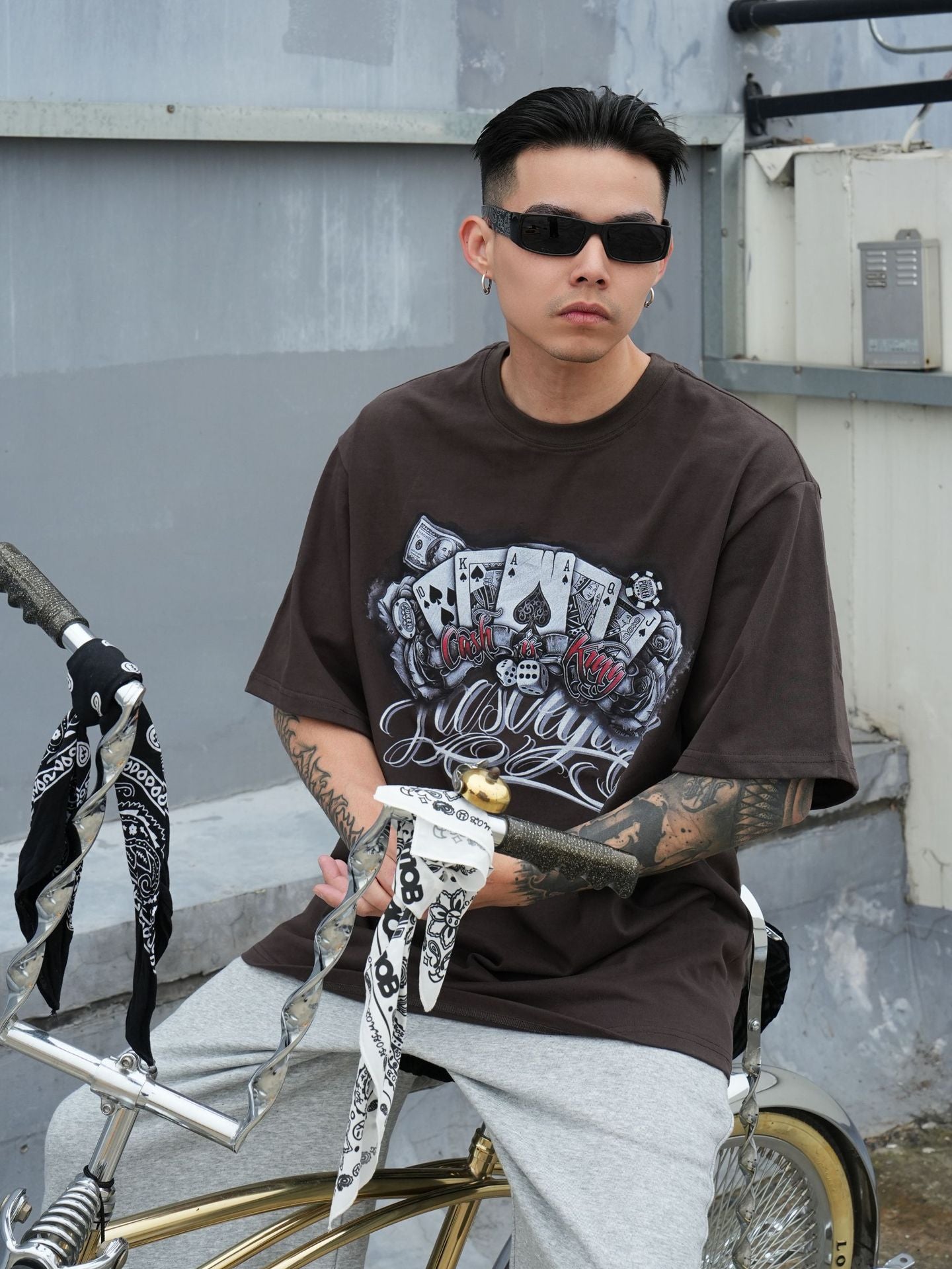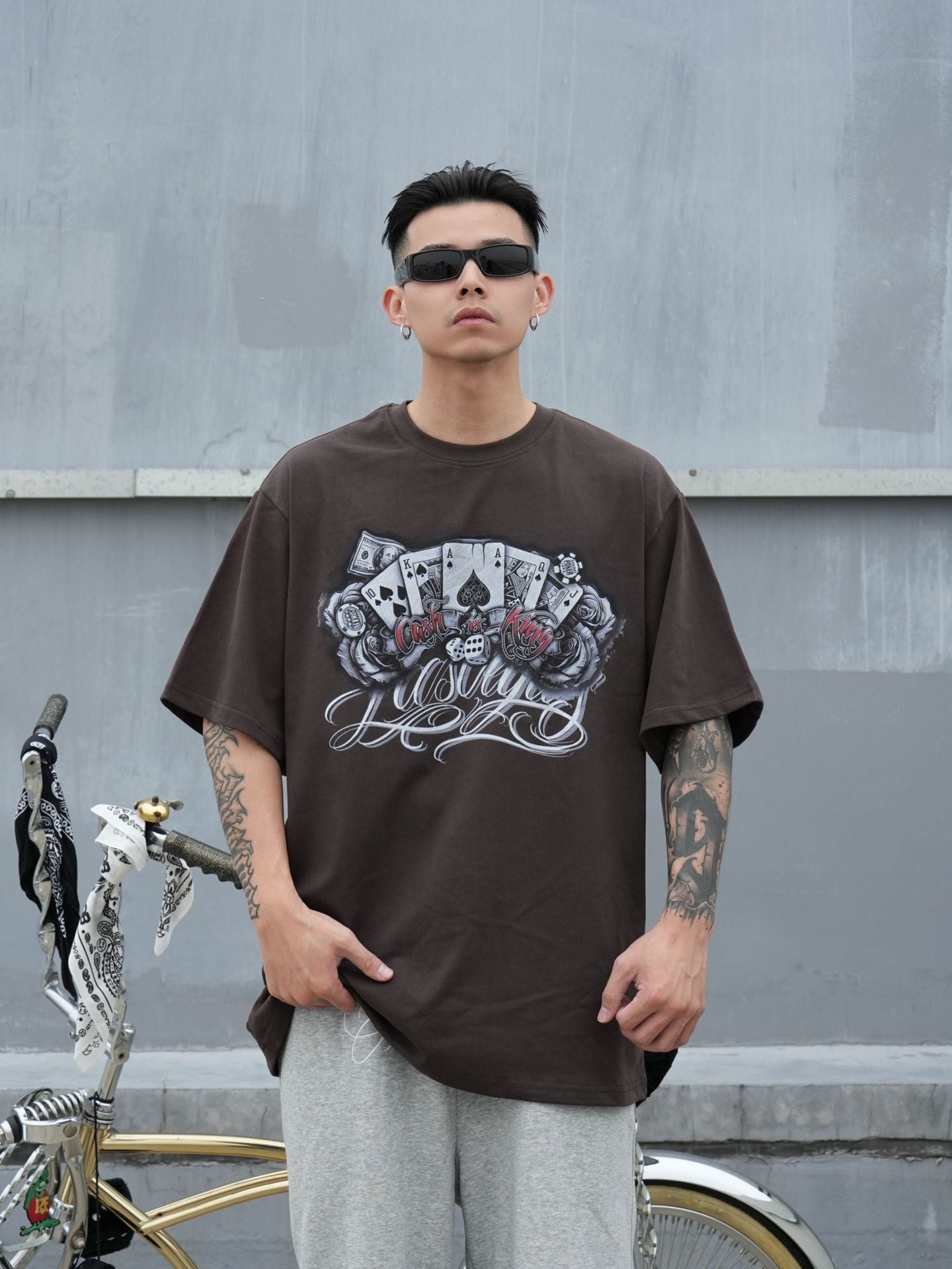 𝔽𝕦𝕤𝕚𝕠𝕟 𝔽𝕠𝕔𝕦𝕤 -ᴄʜɪᴄᴀɴᴏ♠︎悍匪♠︎ 美式寬鬆上衣casino圖案嘻哈短袖