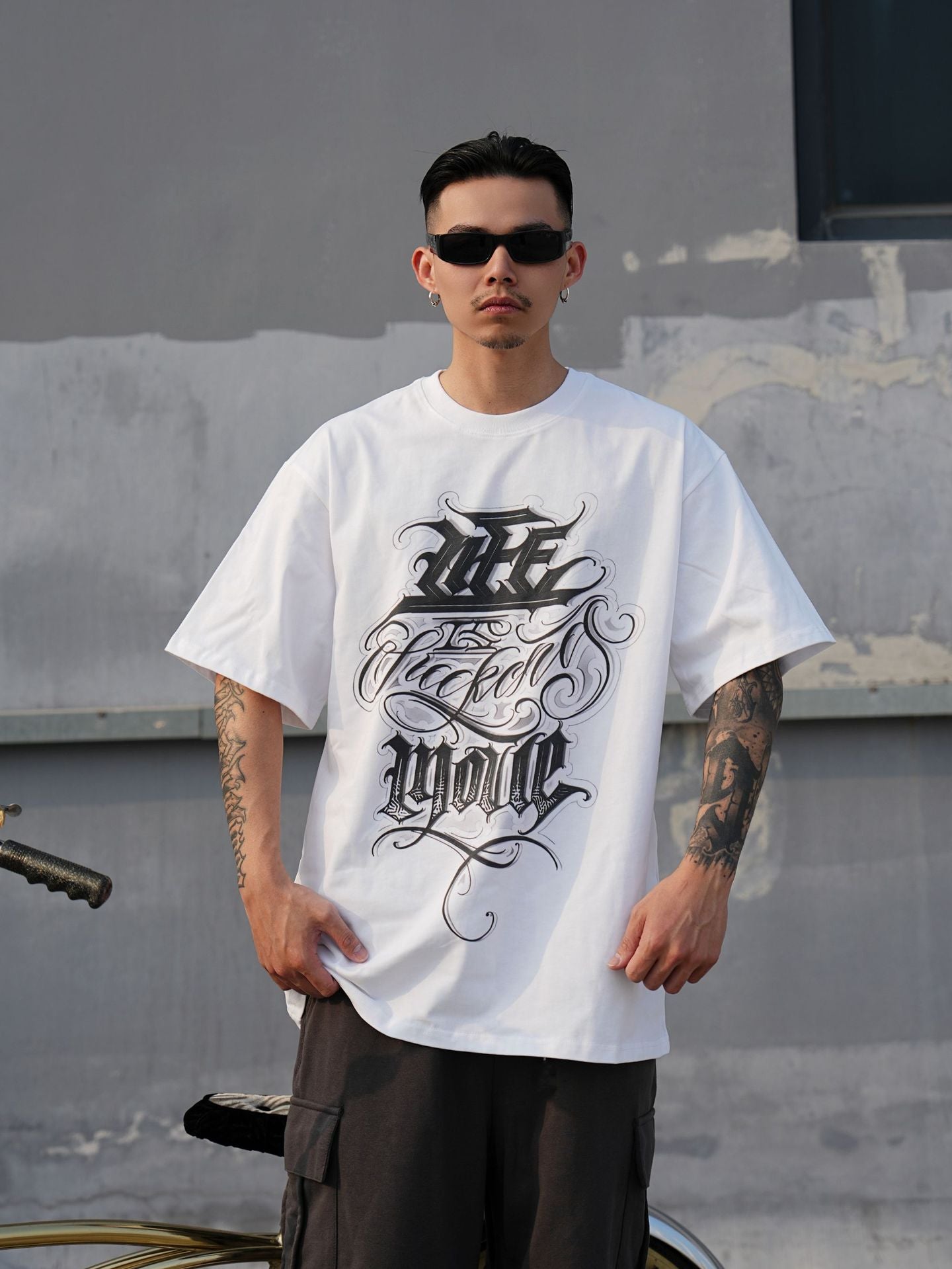 𝔽𝕦𝕤𝕚𝕠𝕟 𝔽𝕠𝕔𝕦𝕤-ᴄʜɪᴄᴀɴᴏ♠︎悍匪♠︎美式風格哥德草寫字體寬鬆短袖