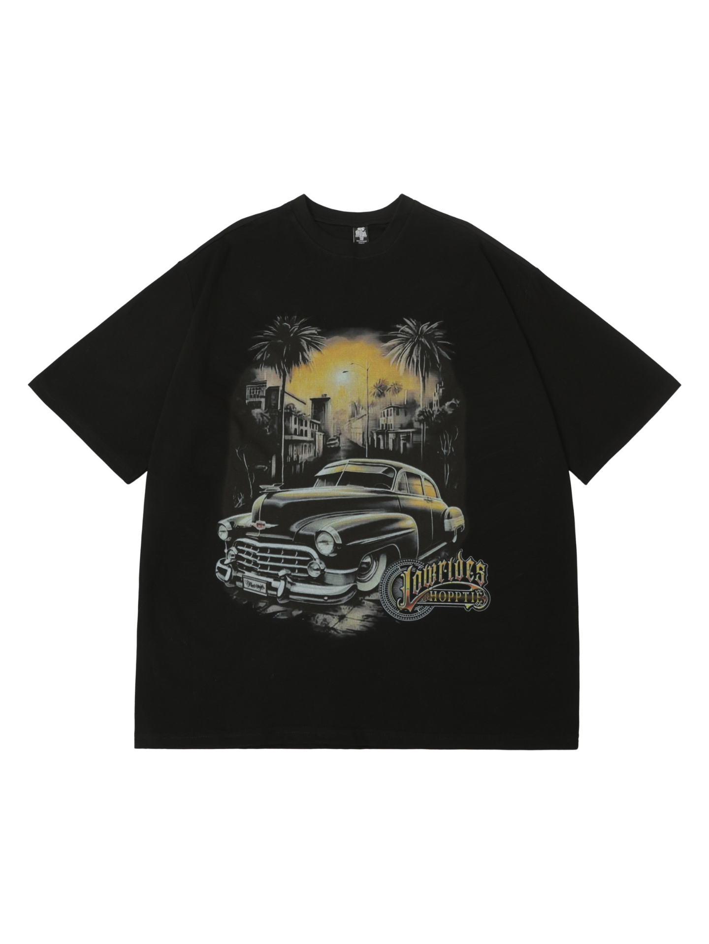 𝔽𝕦𝕤𝕚𝕠𝕟 𝔽𝕠𝕔𝕦𝕤 -ᴄʜɪᴄᴀɴᴏ♠︎悍匪♠︎ 西海岸Lowrider老爺車白墨印花寬鬆短袖
