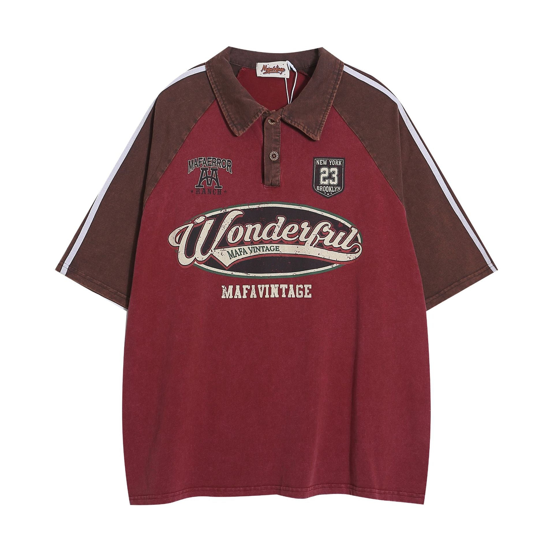 Polo Shirt𒉽美式復古拼色翻領POLO衫IN-09
