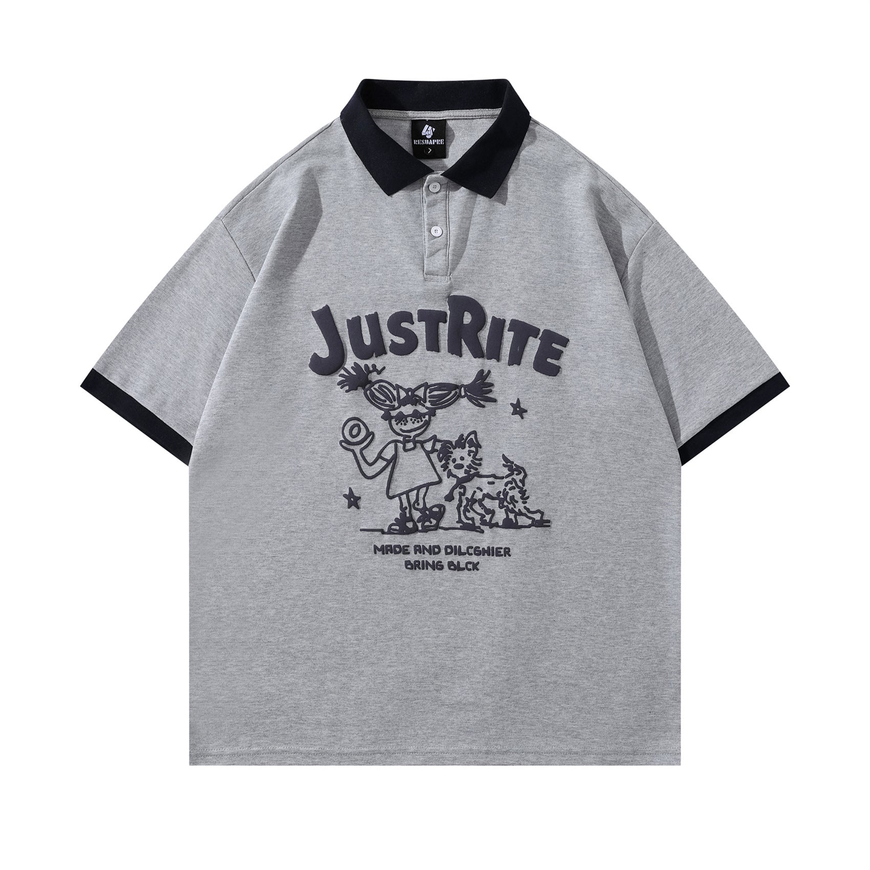 Polo Shirt𒉽美式復古字母印花翻領POLO衫JD-3