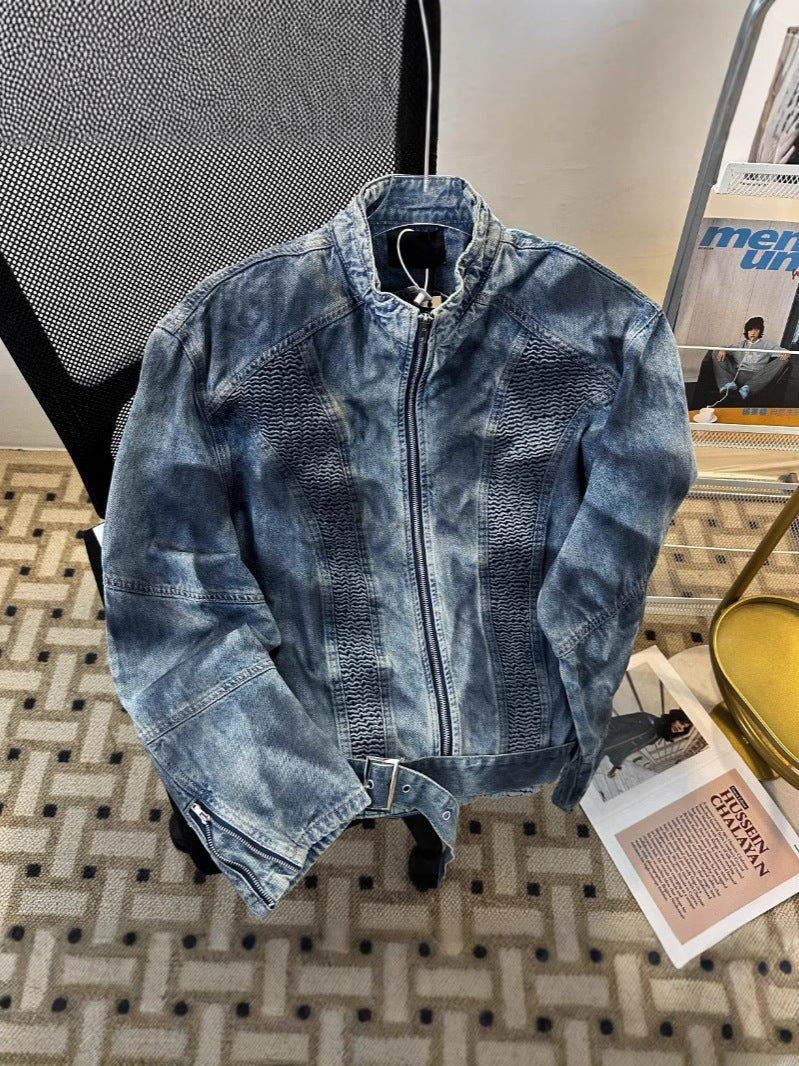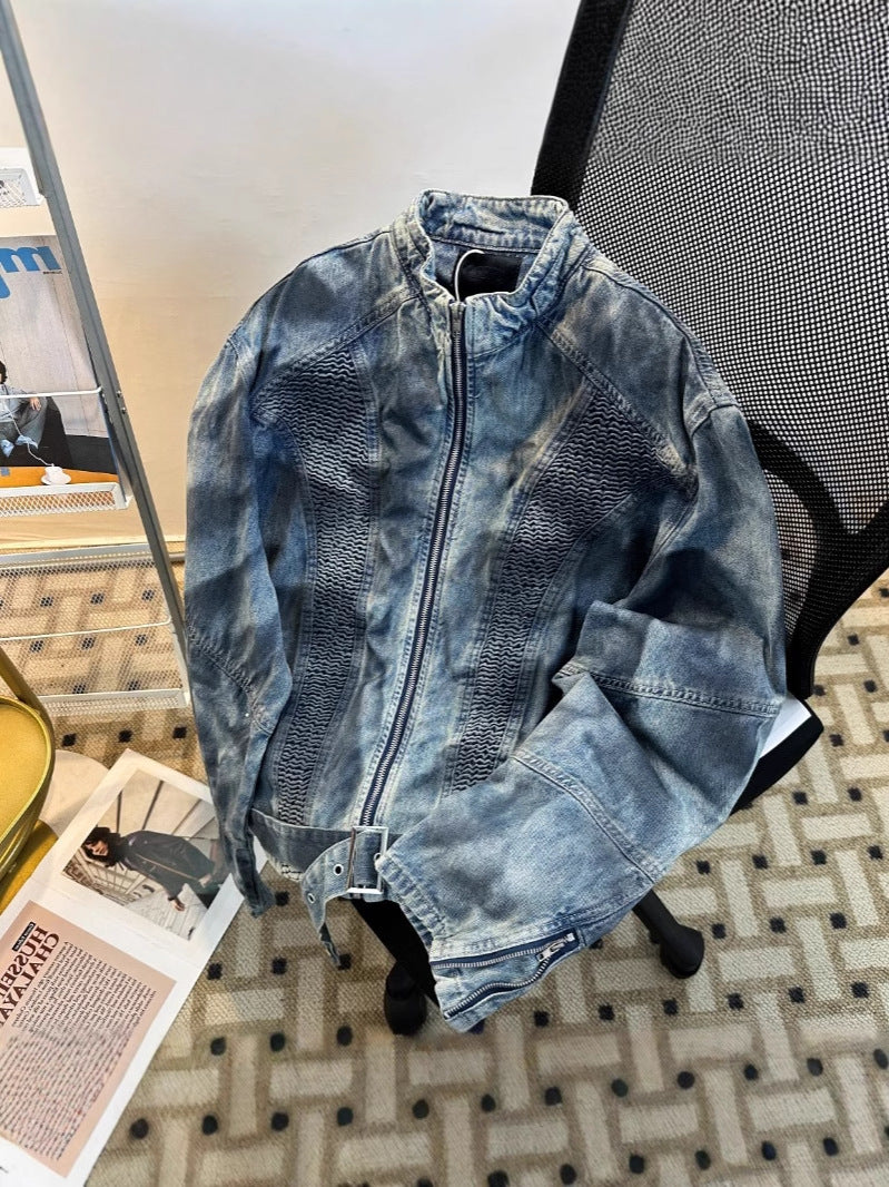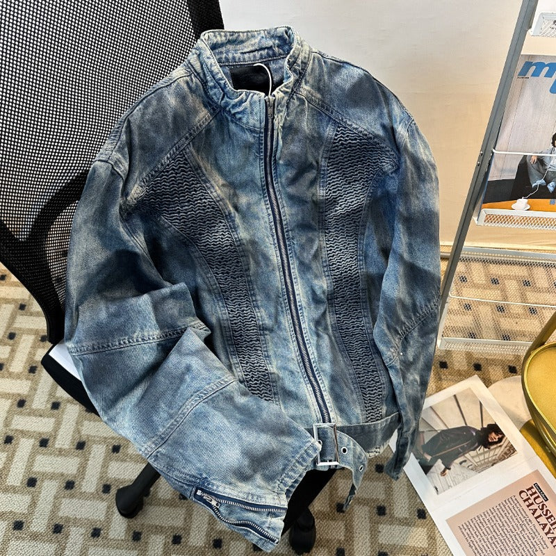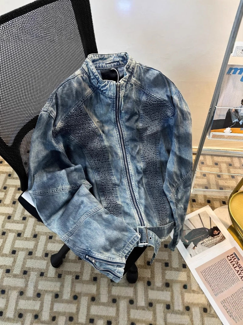 snɔoɟ uoı̣snɟ - 做舊牛仔上衣男高级感痞帥美式夾克設計感男外套 Bc-005