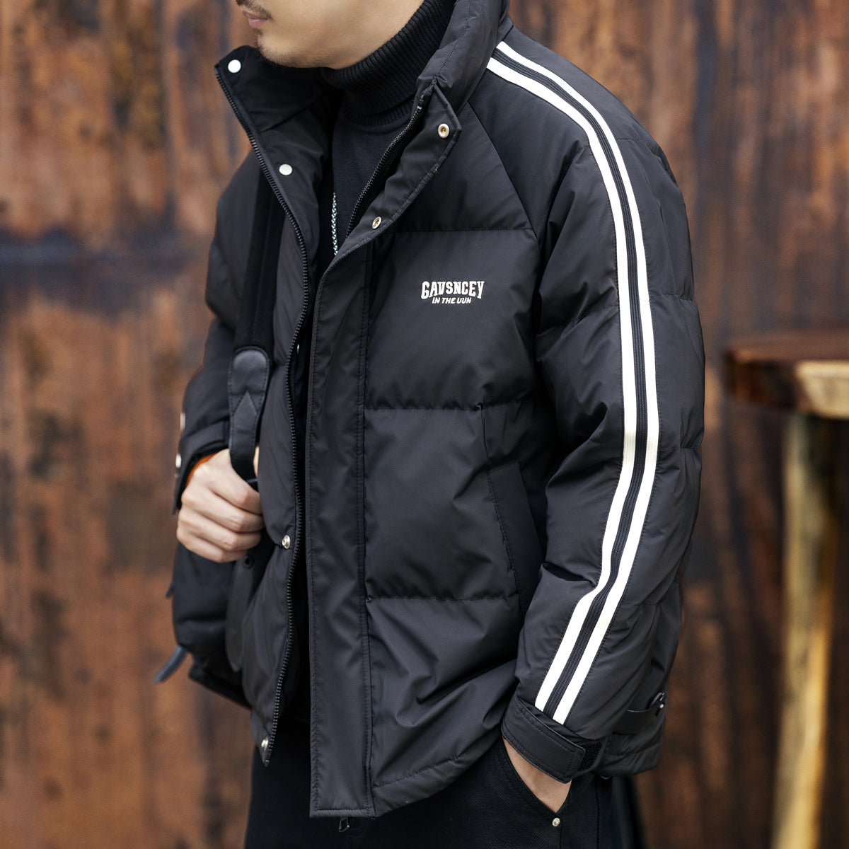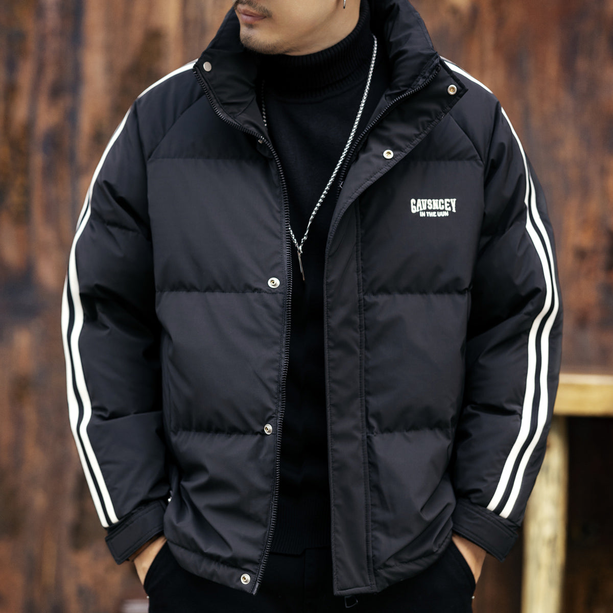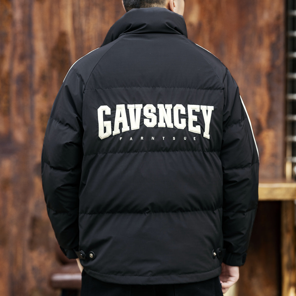 snɔoɟ uoı̣snɟ - 格藍鹿字母刺繡條纹黑色羽绒服秋冬加厚保暖鴨绒休閒外套 FG-352