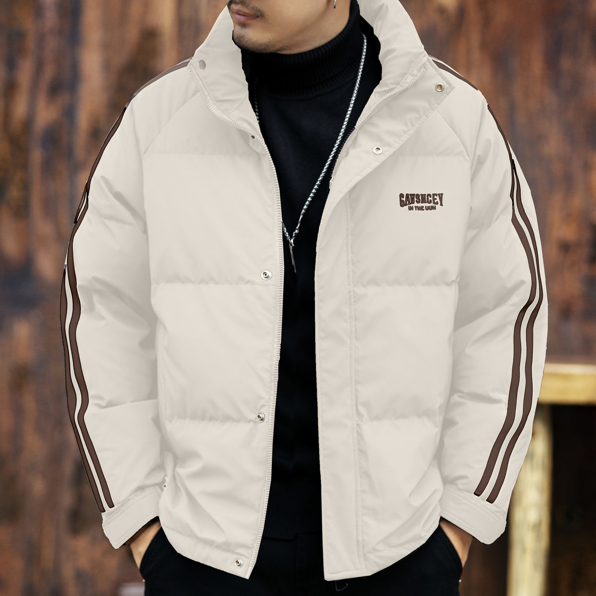 snɔoɟ uoı̣snɟ - 格藍鹿字母刺繡條纹黑色羽绒服秋冬加厚保暖鴨绒休閒外套 FG-352