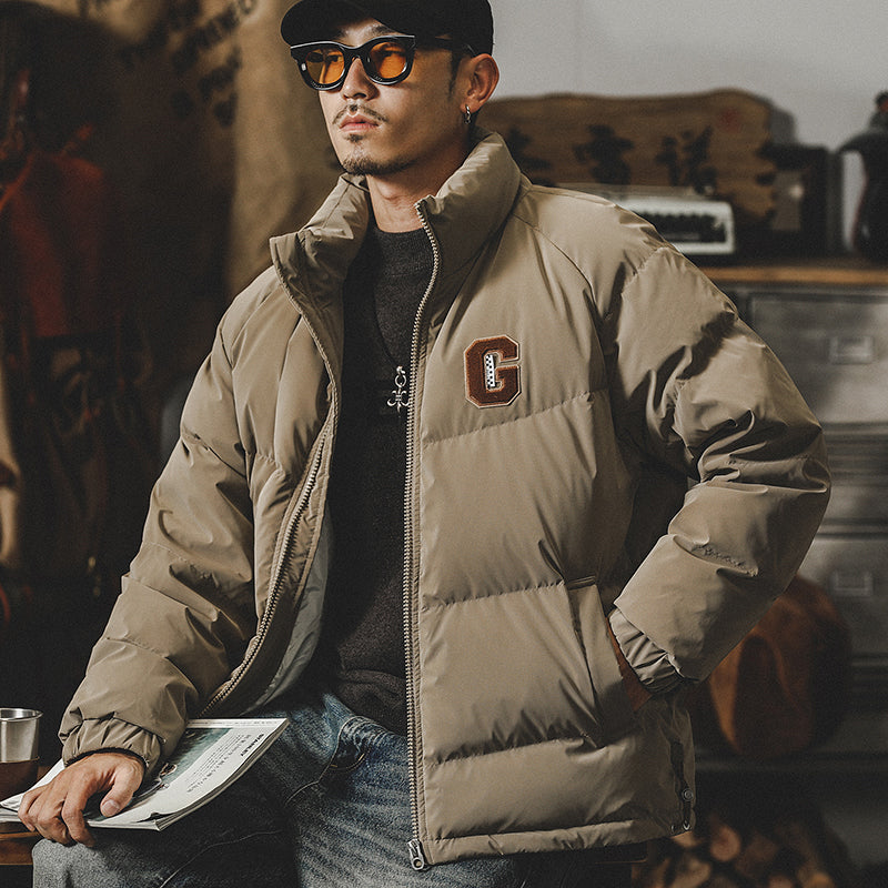 snɔoɟ uoı̣snɟ - 白鴨绒PU皮革輕薄橘色羽绒服冬季2025年新款保暖外套 FG-256